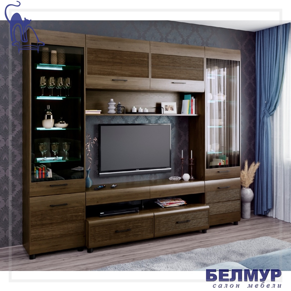 - В гостиной "Глейс" необычная открытая полка является как будто продолжением ручки - декора. Она имеет вид визуально объемного, толстостенного, цельнодеревянного бруса и при этом она необычайно легкая. Поэтому элементы мебели из тамбурата на всем протяжении срока эксплуатации мебель сохраняет идеальную форму и стильный вид.