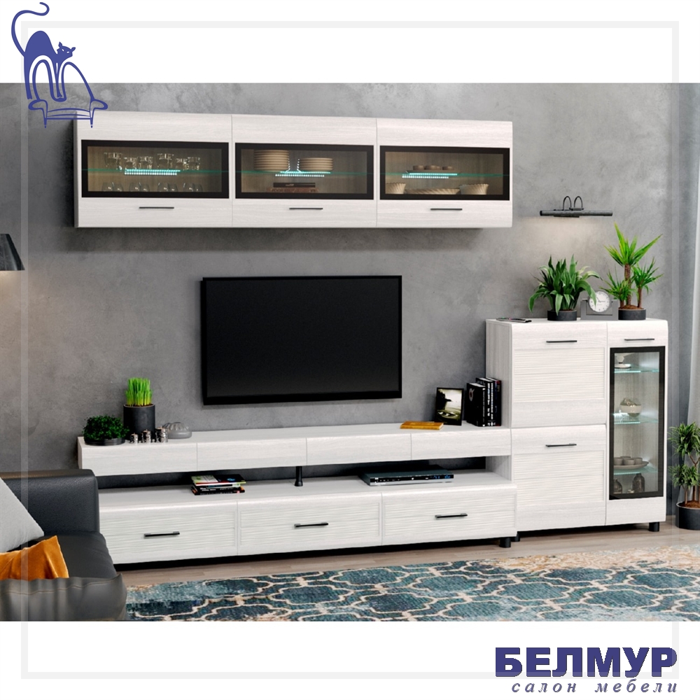 - В гостиной "Глейс" необычная открытая полка является как будто продолжением ручки - декора. Она имеет вид визуально объемного, толстостенного, цельнодеревянного бруса и при этом она необычайно легкая. Поэтому элементы мебели из тамбурата на всем протяжении срока эксплуатации мебель сохраняет идеальную форму и стильный вид.