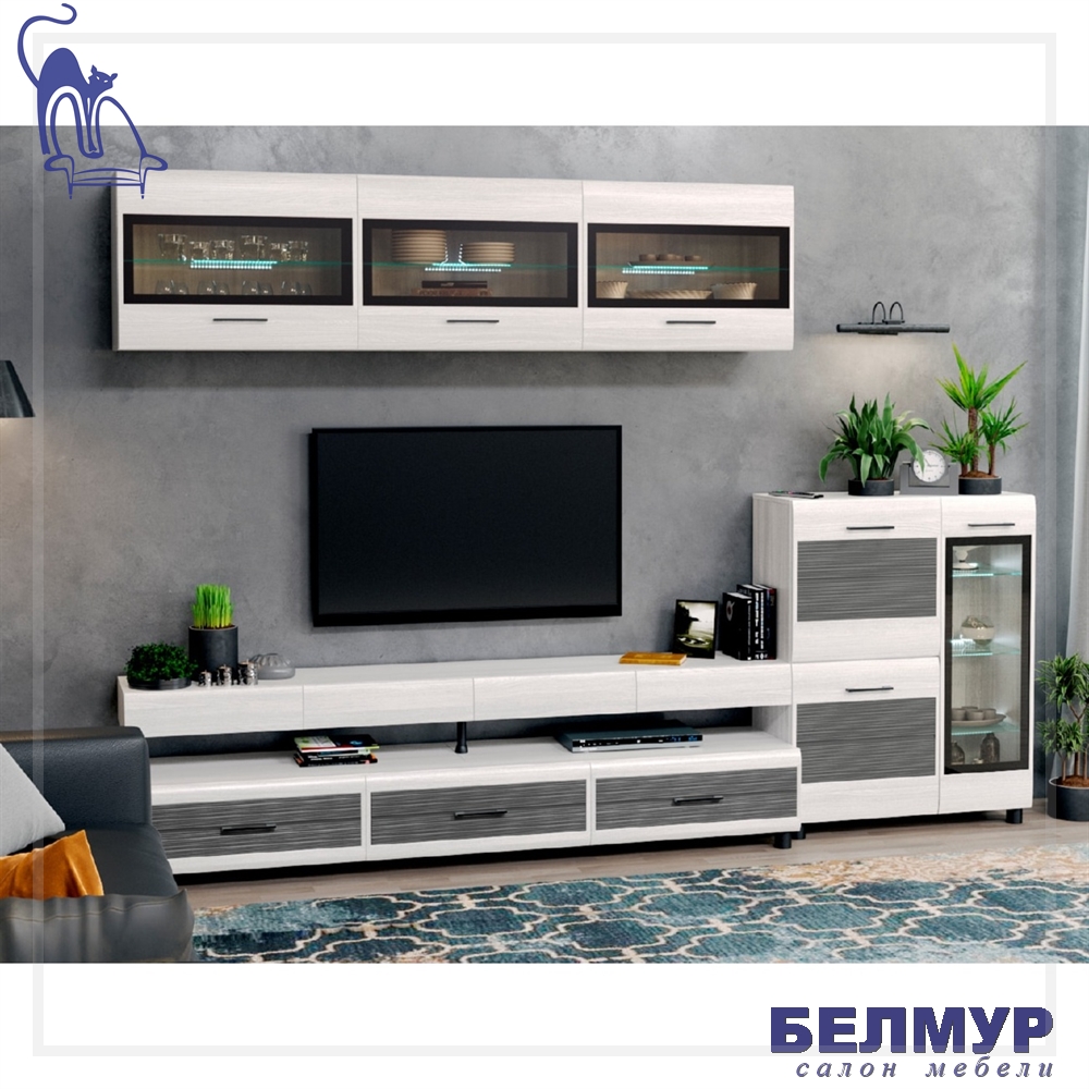 - В гостиной "Глейс" необычная открытая полка является как будто продолжением ручки - декора. Она имеет вид визуально объемного, толстостенного, цельнодеревянного бруса и при этом она необычайно легкая. Поэтому элементы мебели из тамбурата на всем протяжении срока эксплуатации мебель сохраняет идеальную форму и стильный вид.