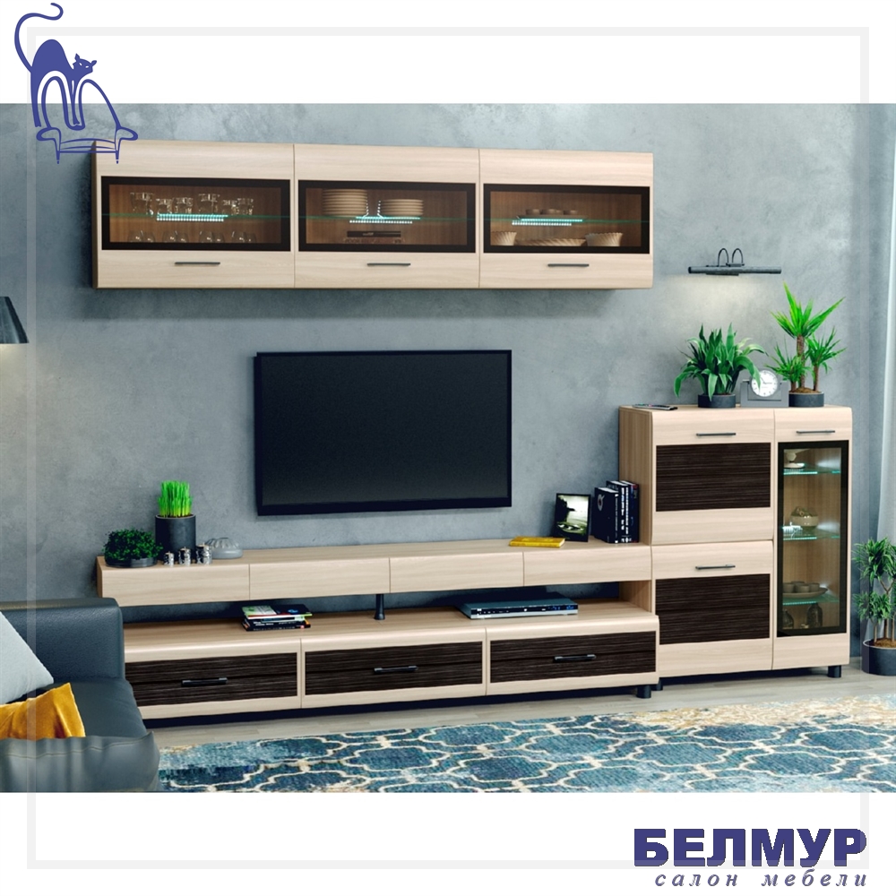 - Глубина тумб под ТВ и шкафов одинакова.