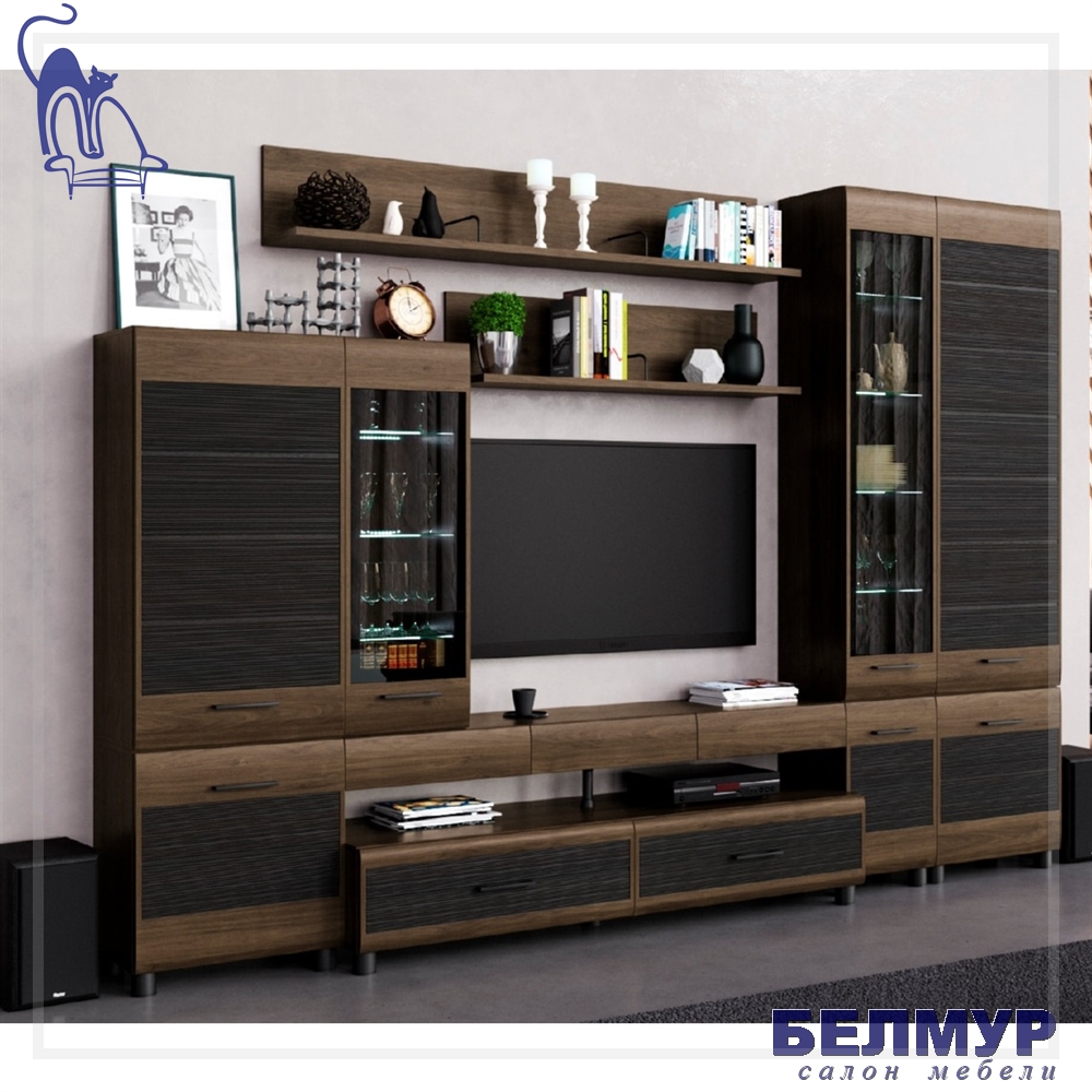 - В гостиной "Глейс" необычная открытая полка является как будто продолжением ручки - декора. Она имеет вид визуально объемного, толстостенного, цельнодеревянного бруса и при этом она необычайно легкая. Поэтому элементы мебели из тамбурата на всем протяжении срока эксплуатации мебель сохраняет идеальную форму и стильный вид.