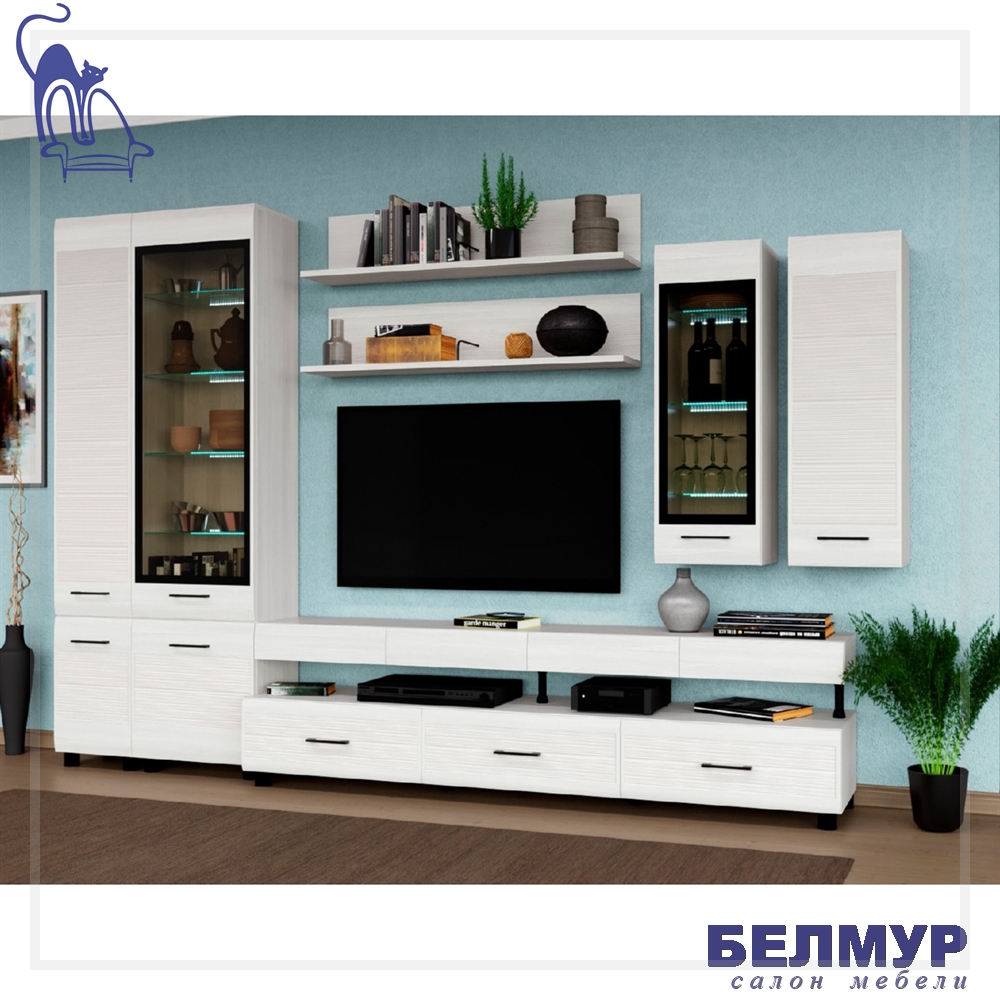 - В гостиной "Глейс" необычная открытая полка является как будто продолжением ручки - декора. Она имеет вид визуально объемного, толстостенного, цельнодеревянного бруса и при этом она необычайно легкая. Поэтому элементы мебели из тамбурата на всем протяжении срока эксплуатации мебель сохраняет идеальную форму и стильный вид.