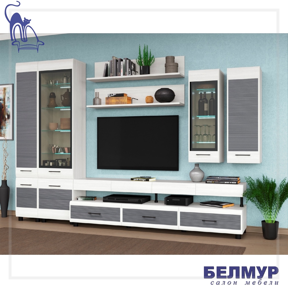 - В гостиной "Глейс" необычная открытая полка является как будто продолжением ручки - декора. Она имеет вид визуально объемного, толстостенного, цельнодеревянного бруса и при этом она необычайно легкая. Поэтому элементы мебели из тамбурата на всем протяжении срока эксплуатации мебель сохраняет идеальную форму и стильный вид.