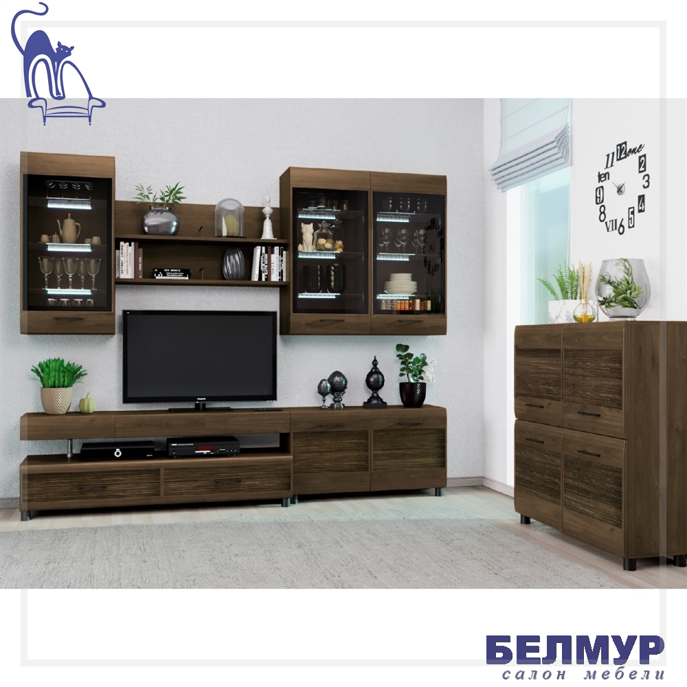 - В гостиной "Глейс" необычная открытая полка является как будто продолжением ручки - декора. Она имеет вид визуально объемного, толстостенного, цельнодеревянного бруса и при этом она необычайно легкая. Поэтому элементы мебели из тамбурата на всем протяжении срока эксплуатации мебель сохраняет идеальную форму и стильный вид.