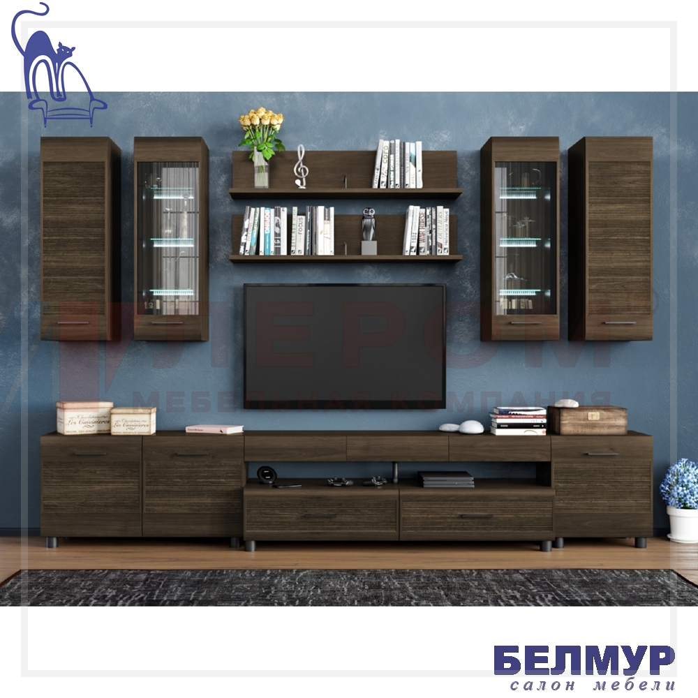 - В гостиной "Глейс" необычная открытая полка является как будто продолжением ручки - декора. Она имеет вид визуально объемного, толстостенного, цельнодеревянного бруса и при этом она необычайно легкая. Поэтому элементы мебели из тамбурата на всем протяжении срока эксплуатации мебель сохраняет идеальную форму и стильный вид.