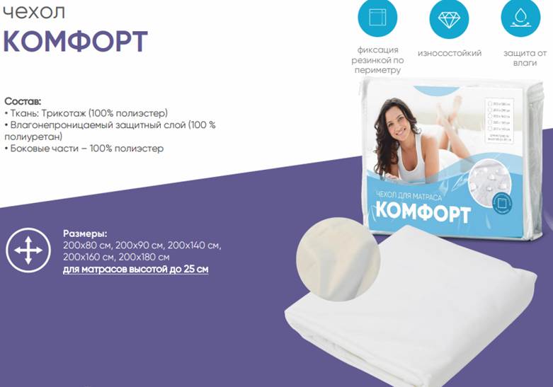 | Ткань чехла | Трикотаж (100% полиэстер) |