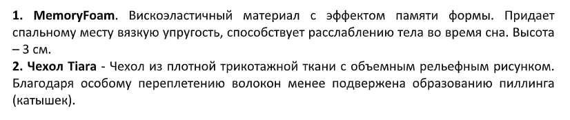 | Наполнение | пена Memory Foam (с эффектом памяти) |