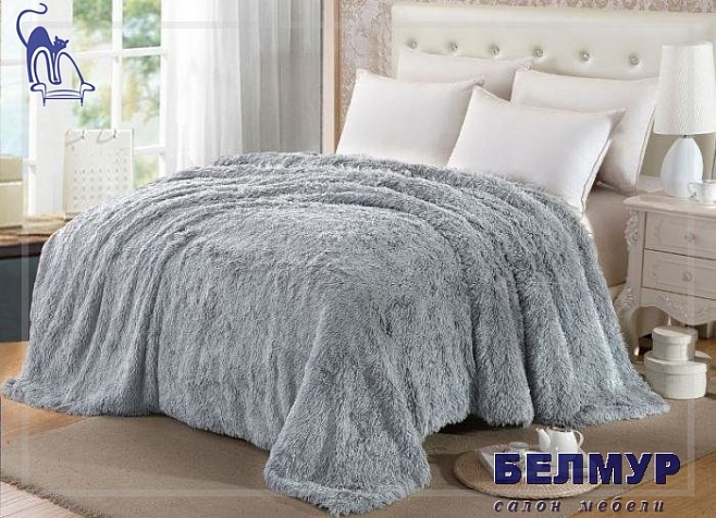 Меховой плед "BLUMARINE" с длинным ворсом, евро, серый