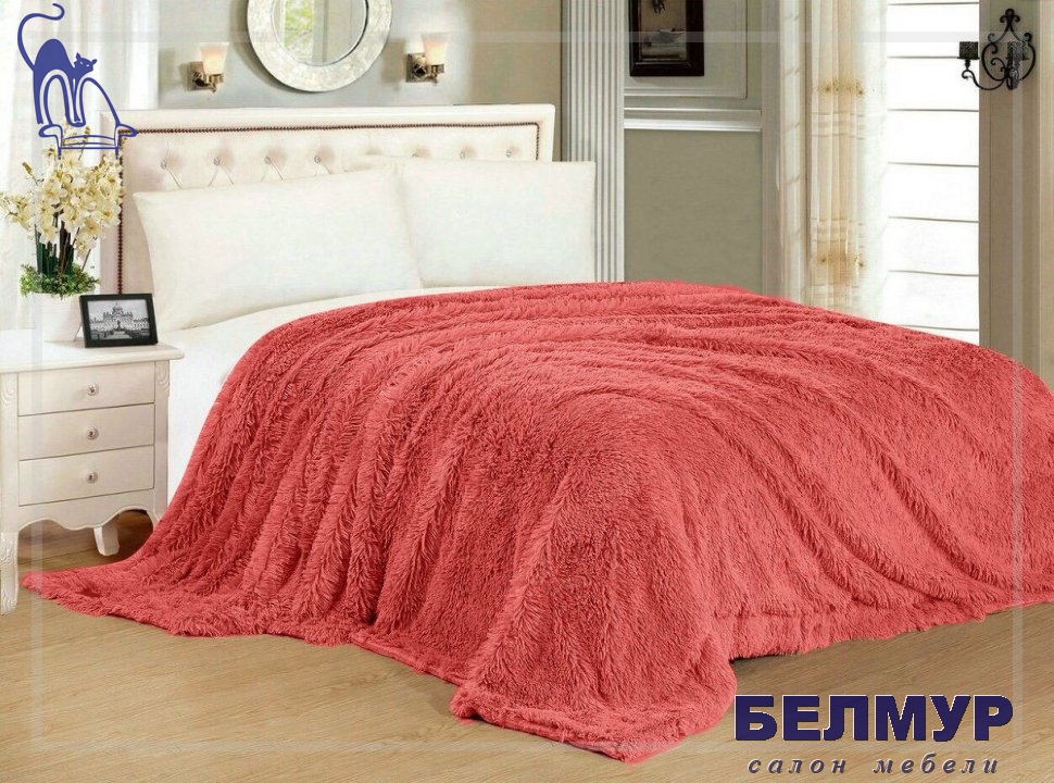 Меховой плед "BLUMARINE" с длинным ворсом, коралловый