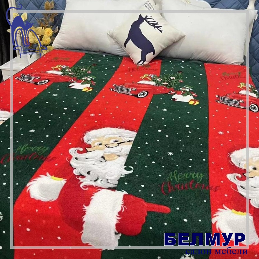 Плед плюшевый новогодний 180х200см А05 (КРАСНЫЙ / ЗЕЛЁНЫЙ)