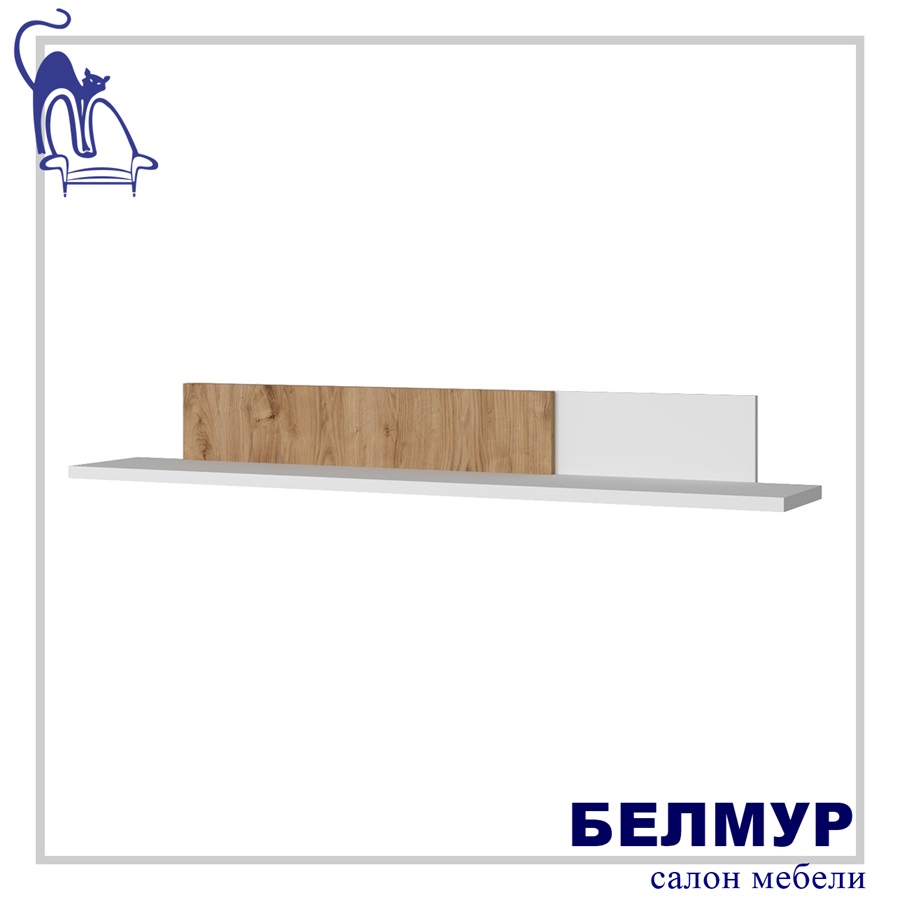 MATEO, Полка навесная 130. Цвет БЕЛЫЙ / ДУБ НАВАРРА