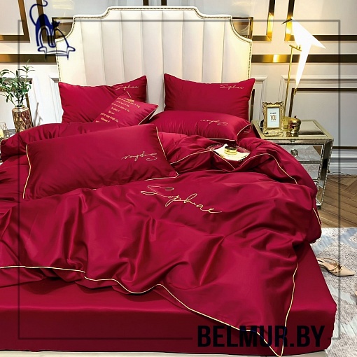 КПБ Winni Simplicity с простыней на резинке /размер 2-спальный/ однотонный с вышивкой красный