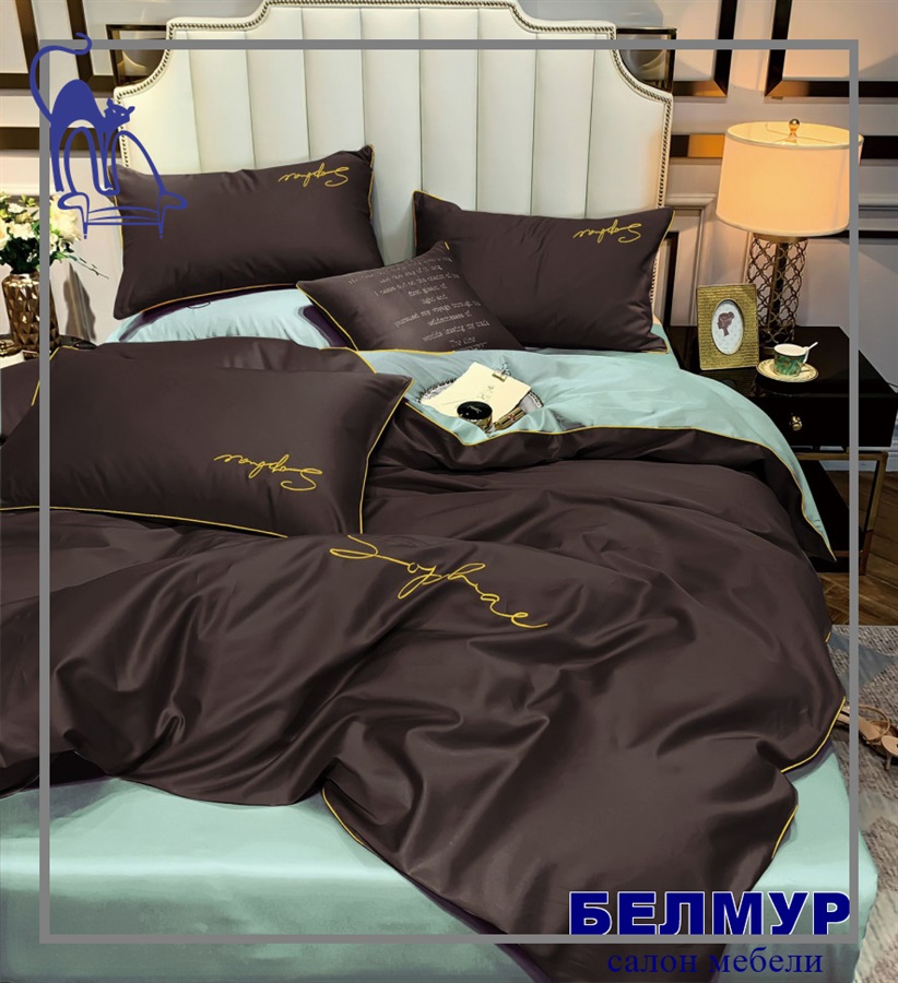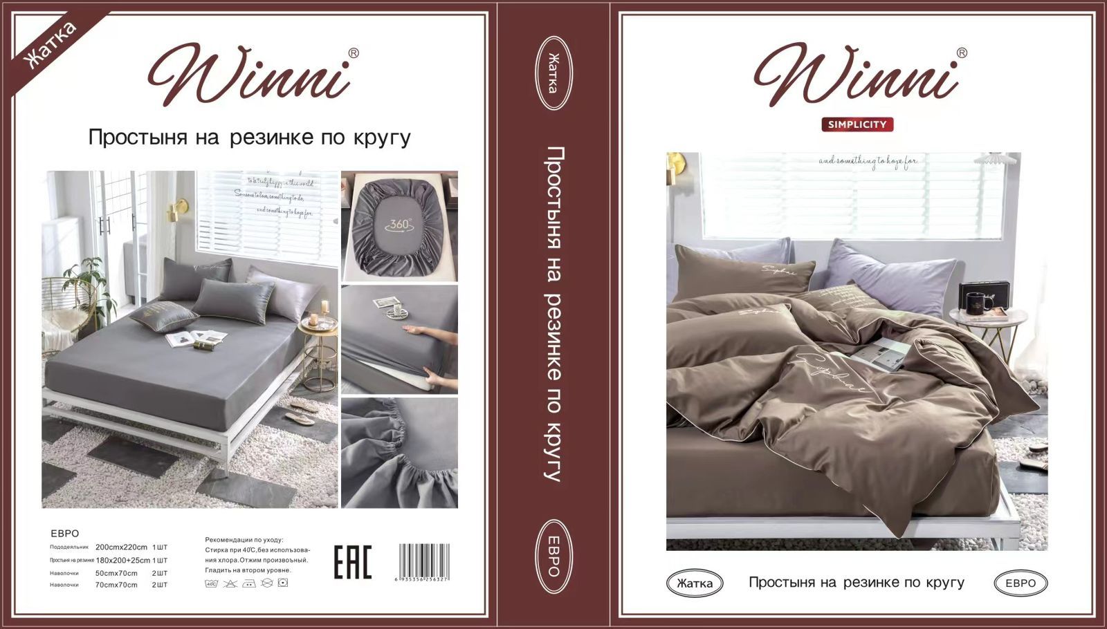 КПБ Winni Simplicity с простыней на резинке /размер ЕВРО/ однотонный с вышивкой коричневый/бирюзовый