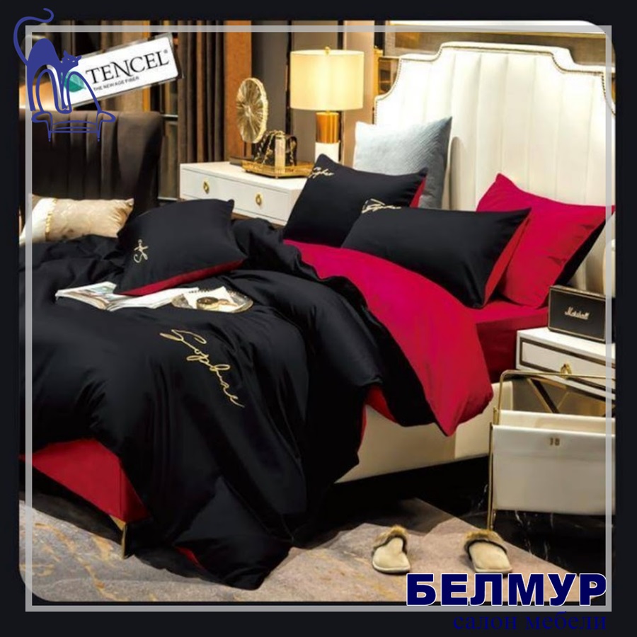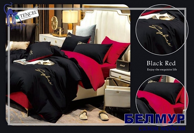 КПБ Winni Tencel однотонный с вышивкой в коробке Black Red