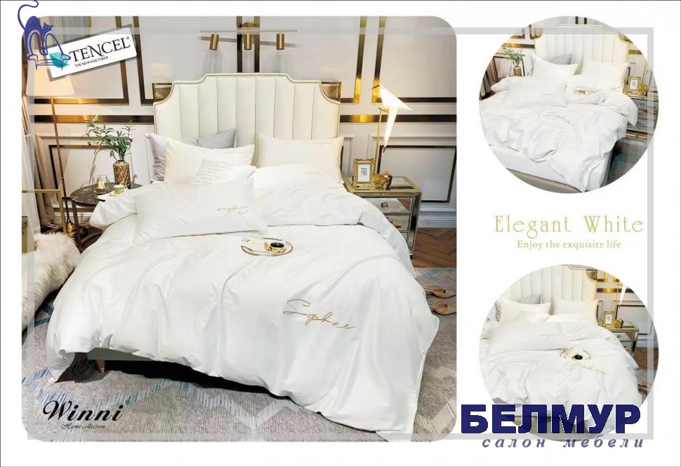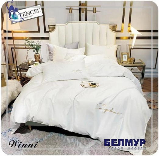 КПБ Winni Tencel однотонный с вышивкой в коробке Elegant White