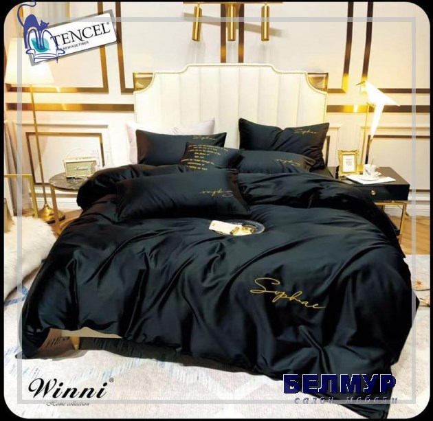 КПБ Winni Tencel однотонный с вышивкой в коробке Midnight Black