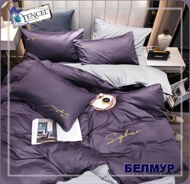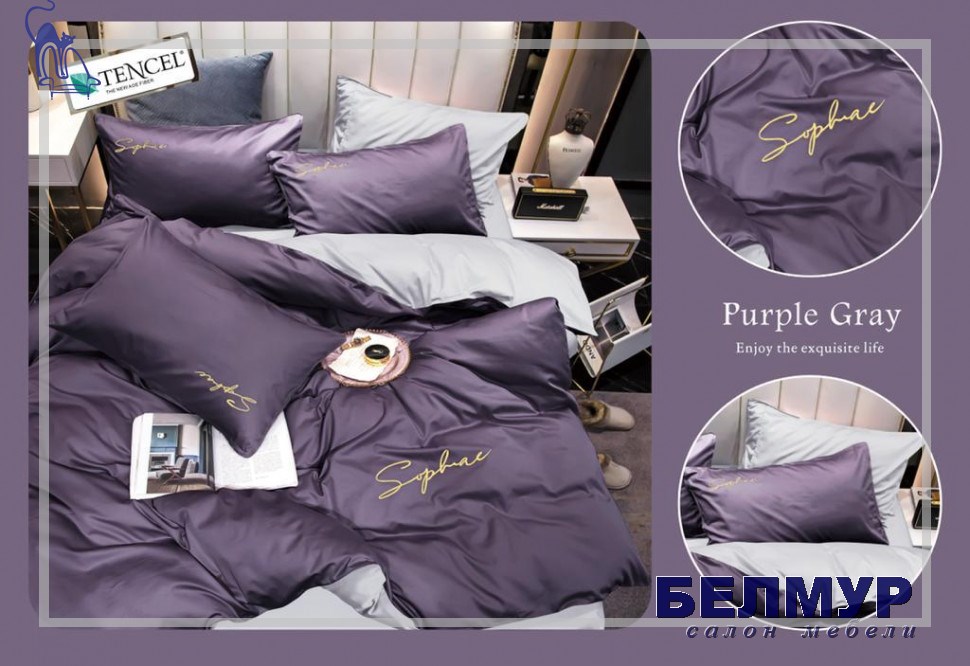 КПБ Winni Tencel однотонный с вышивкой в коробке Purple Grey