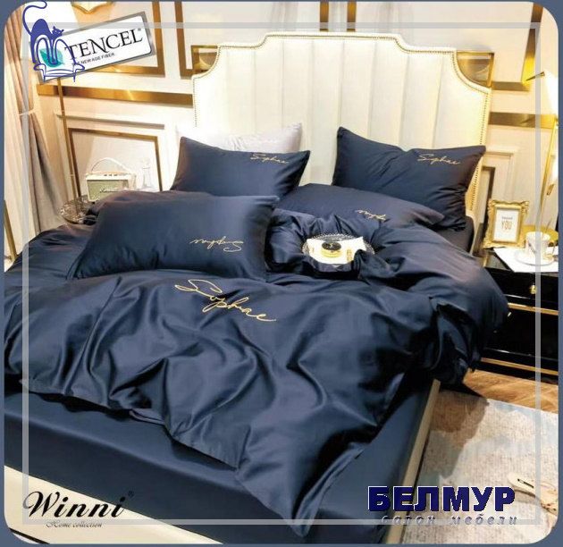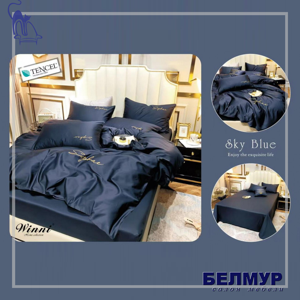 КПБ Winni Tencel однотонный с вышивкой в коробке Sky Blue
