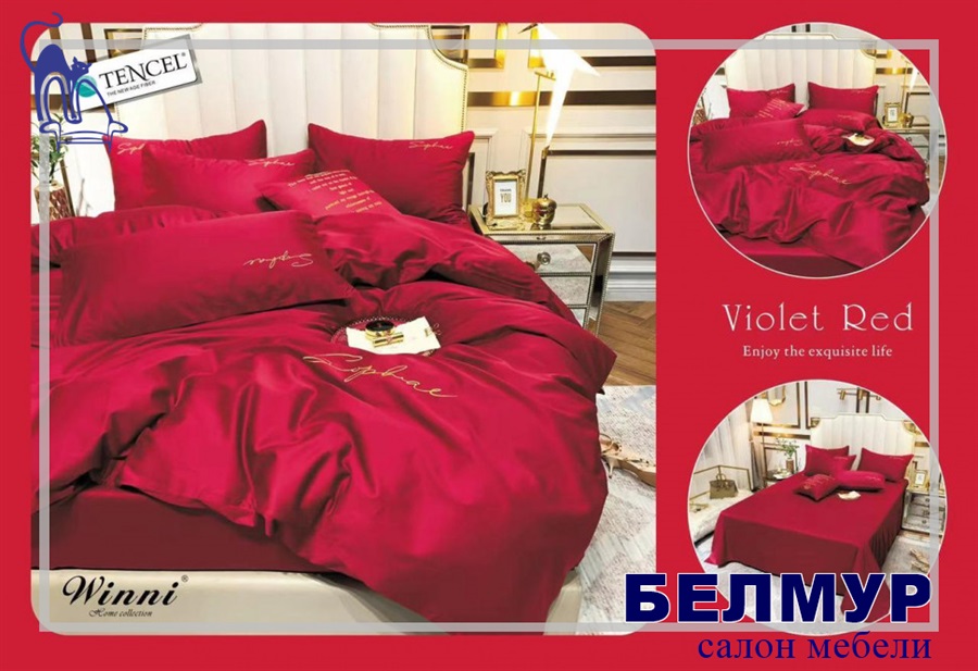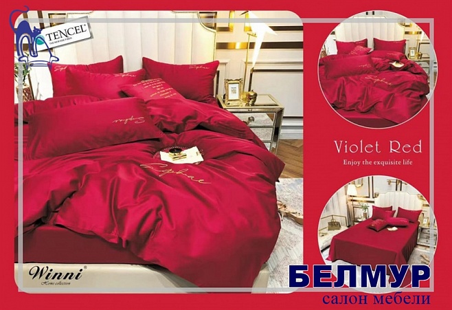 КПБ Winni Tencel однотонный с вышивкой в коробке Violet Red