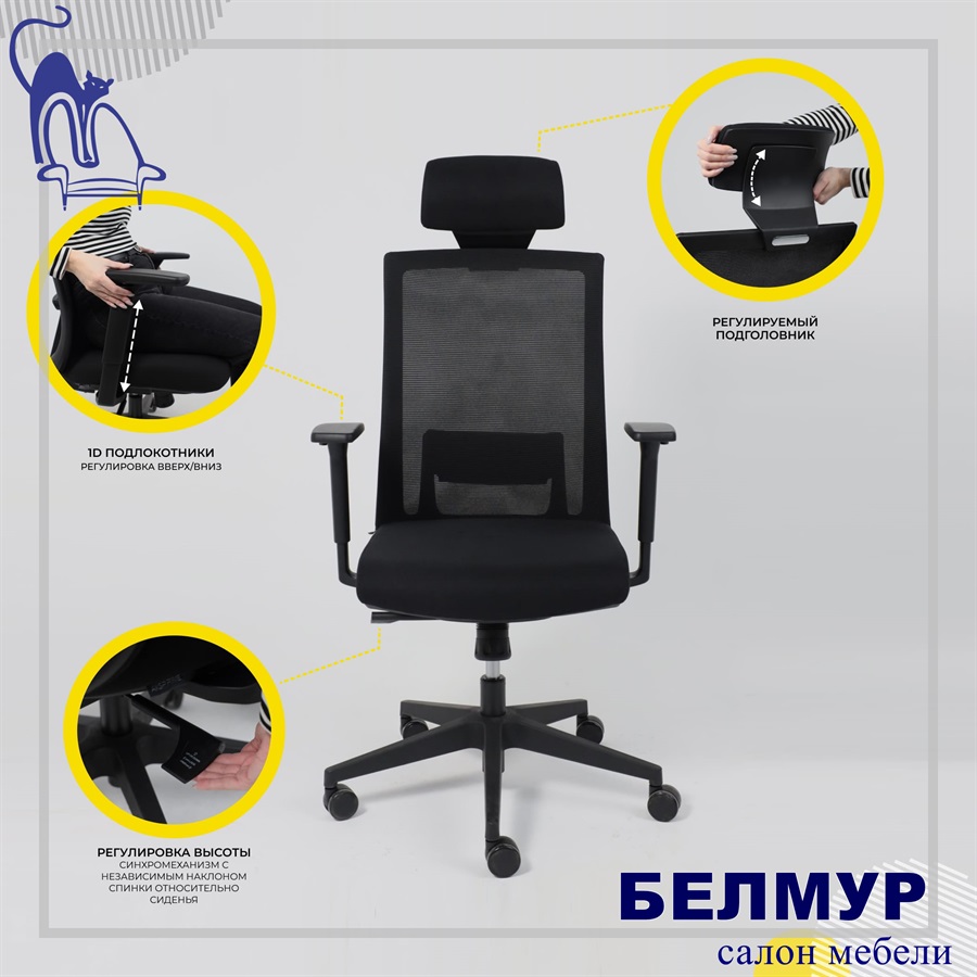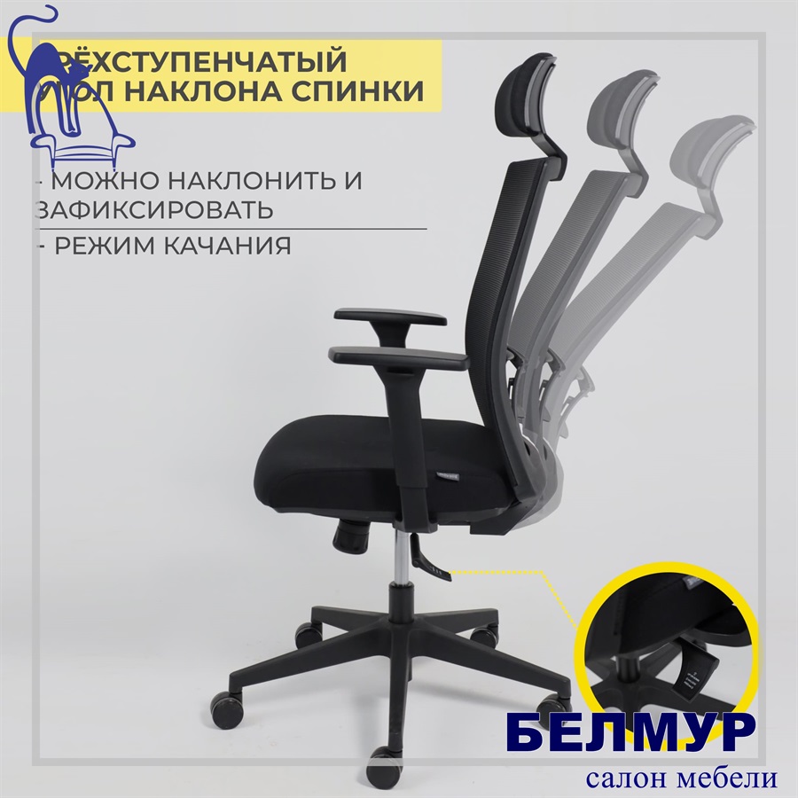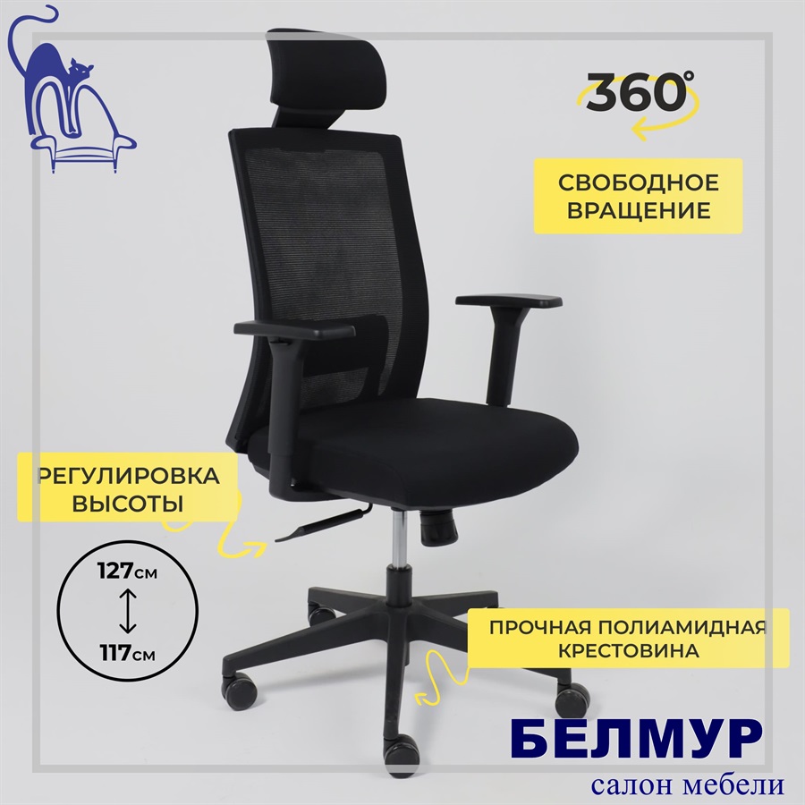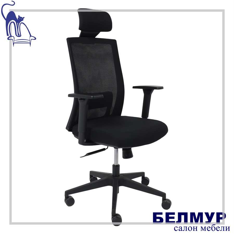 Кресло поворотное ARCUS, черная сетка+ткань/черный полиамид