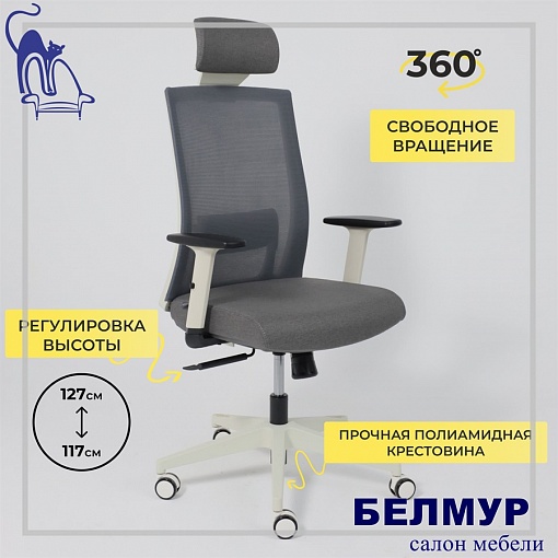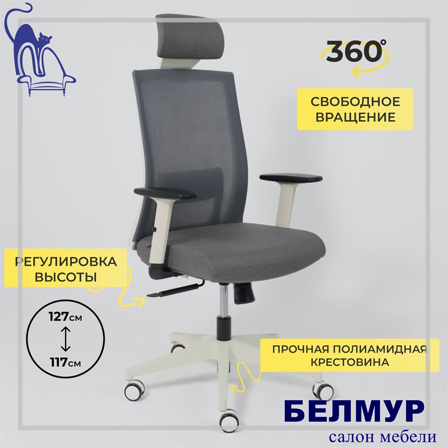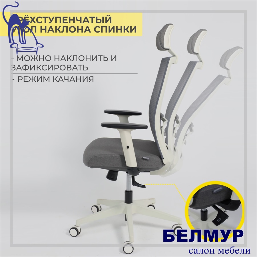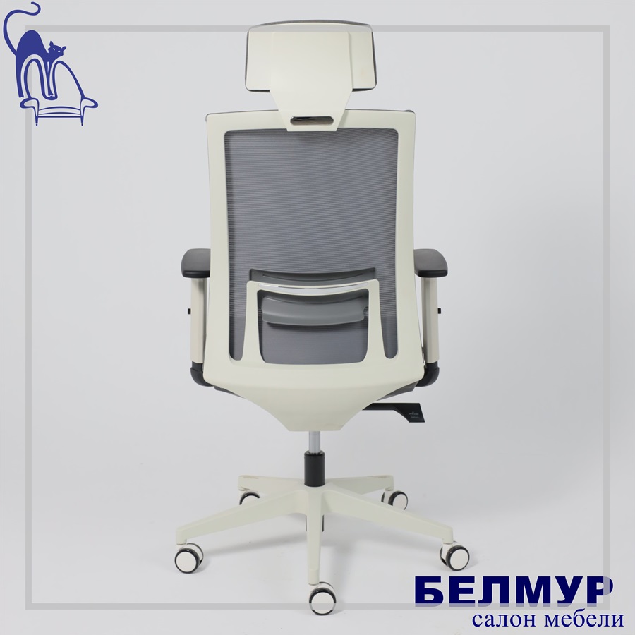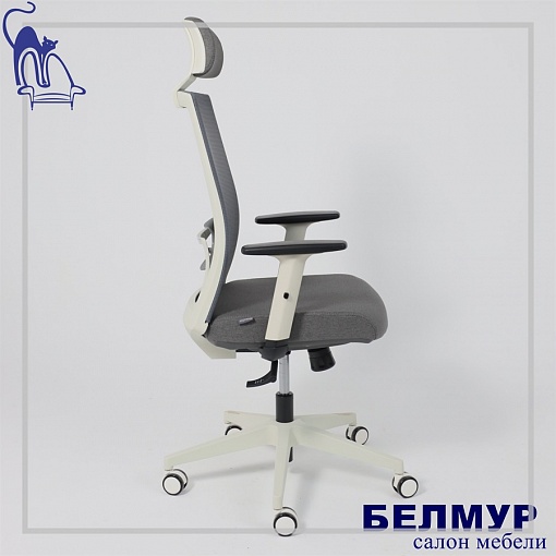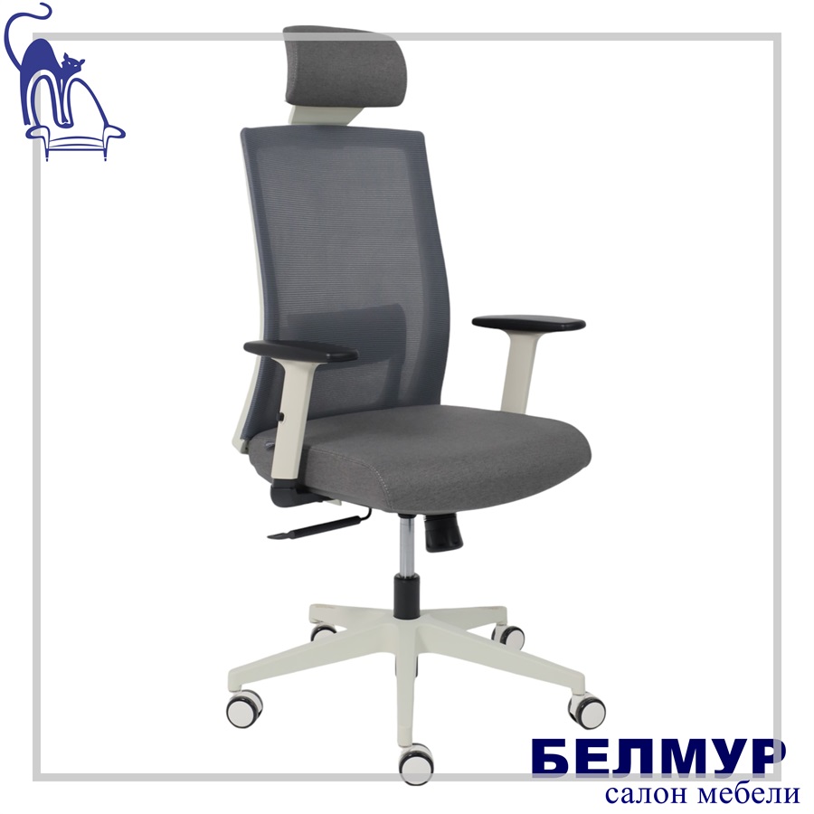 Кресло поворотное ARCUS, серая сетка+ткань/белый полиамид