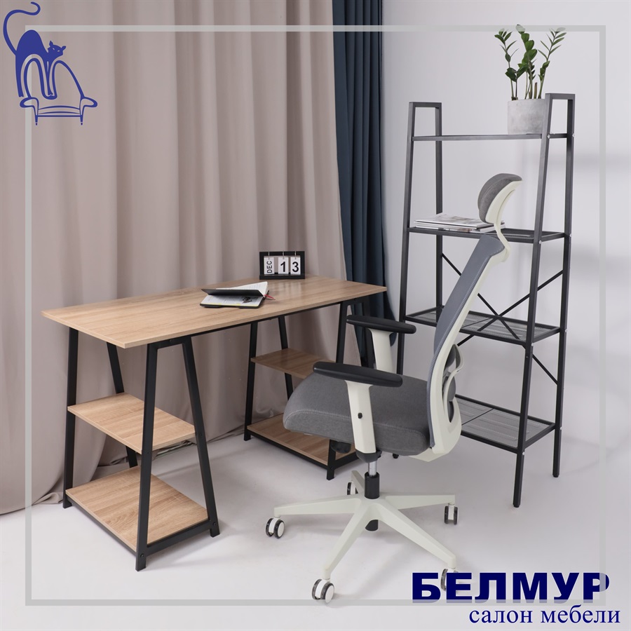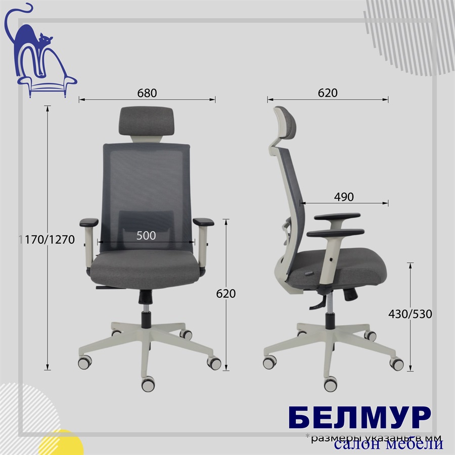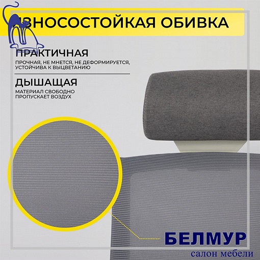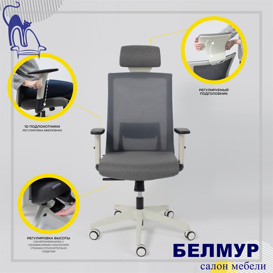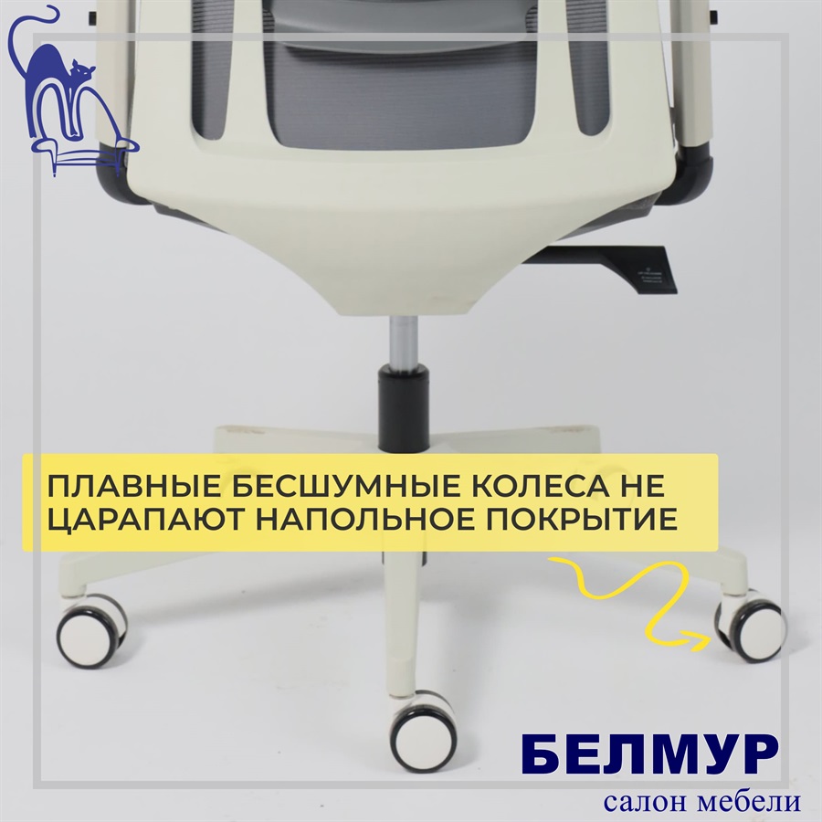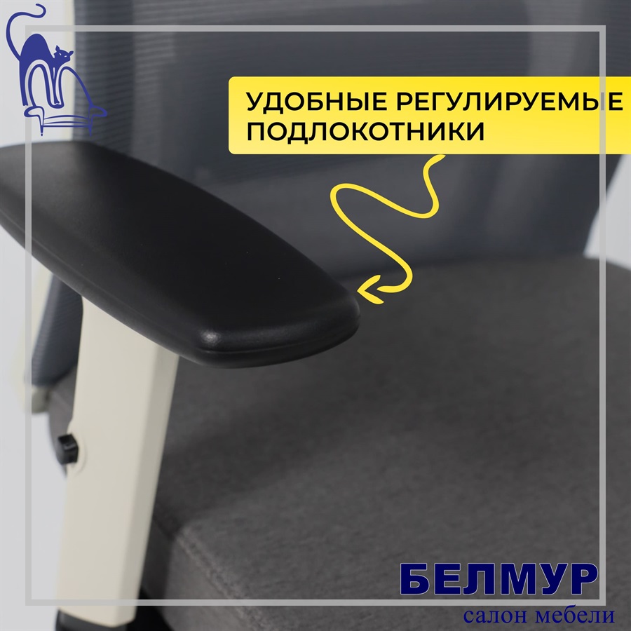 Кресло поворотное ARCUS, серая сетка+ткань/белый полиамид