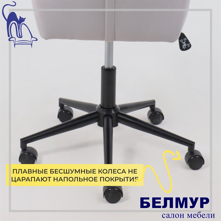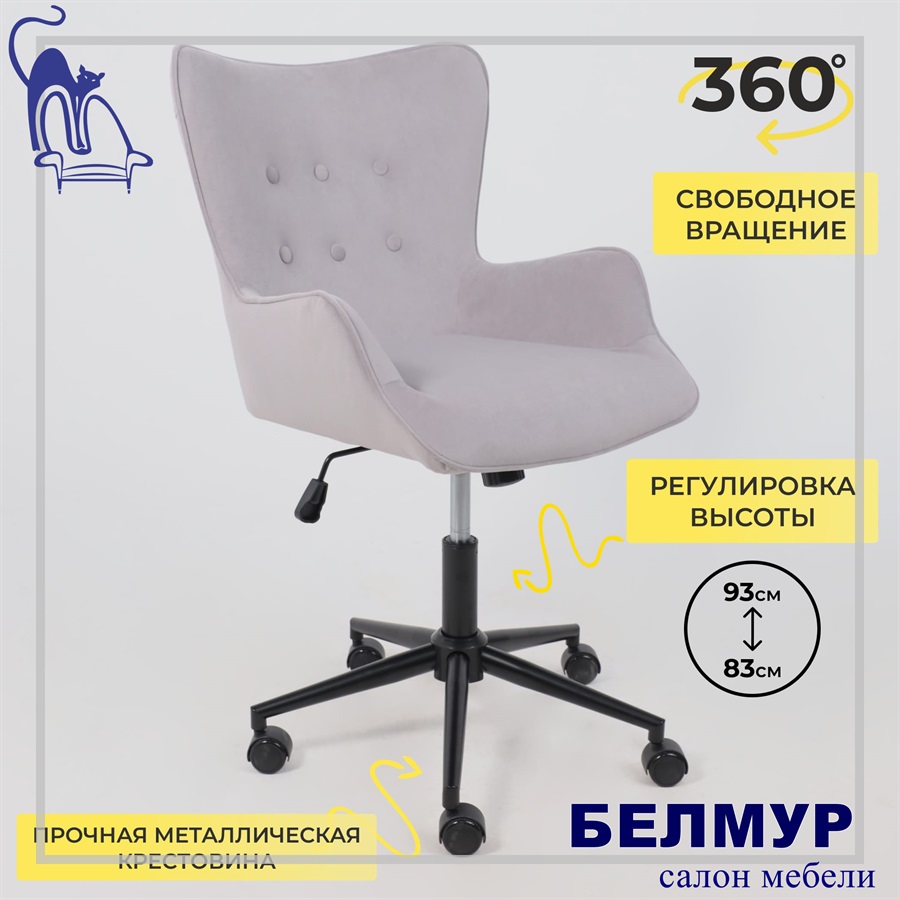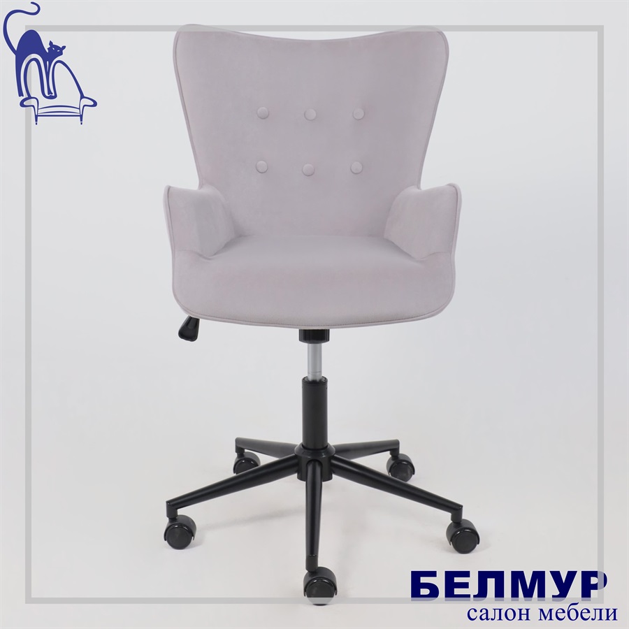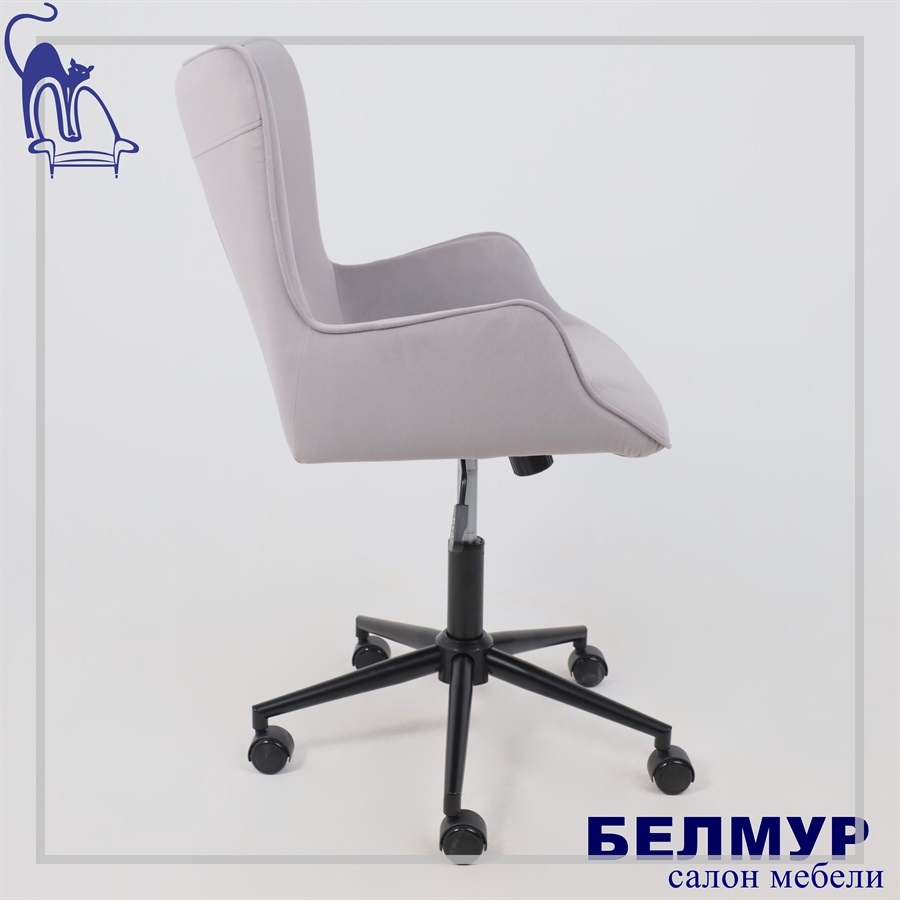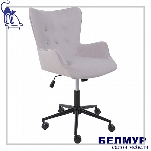 Кресло поворотное BELLA black, Kiton 722 Smoke, велюр/светло-серый