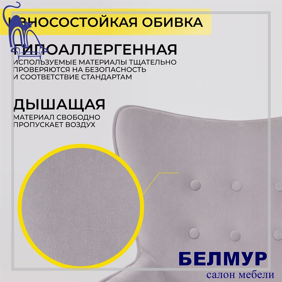 Артикул: _24.116148.Описание | Изготовлено из износостойкого велюра и прочного металлического основания.Внутрення сторона спинки декорированна пуговицами. Комфортная посадка и наличие подлокотников обеспечивают максимальный комфорт |