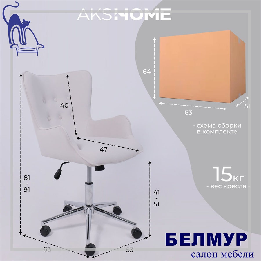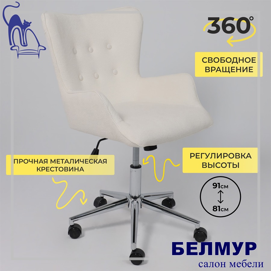 Кресло поворотное BELLA chrome, Buble White 15, букле/белый