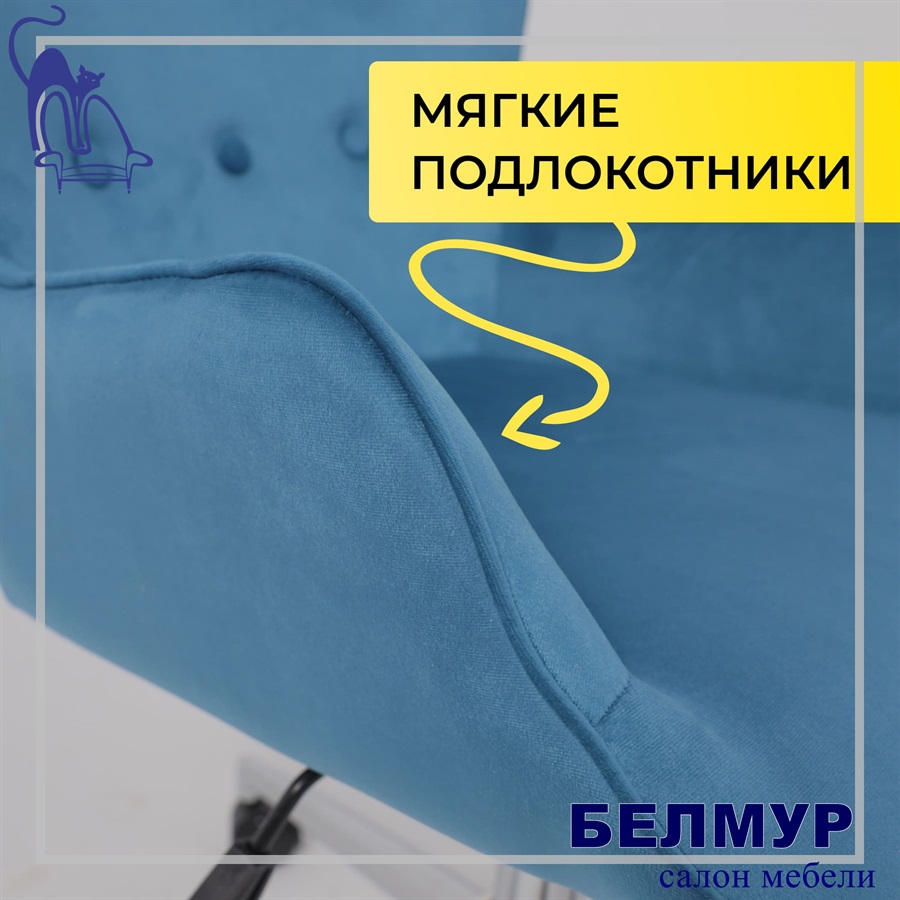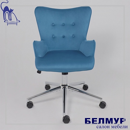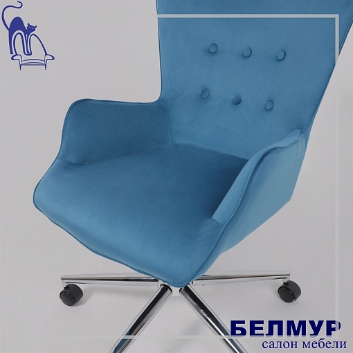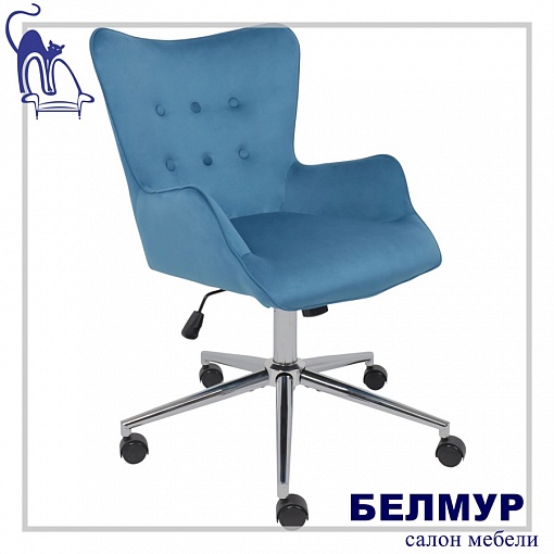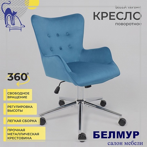 Кресло поворотное BELLA chrome, Seven 115, велюр/темно-голубой