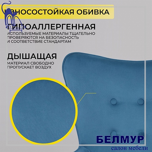 Артикул: _24.119919.Описание | Изготовлено из износостойкого велюра и прочного металлического основания.Внутрення сторона спинки декорированна пуговицами. Комфортная посадка и наличие подлокотников обеспечивают максимальный комфорт |