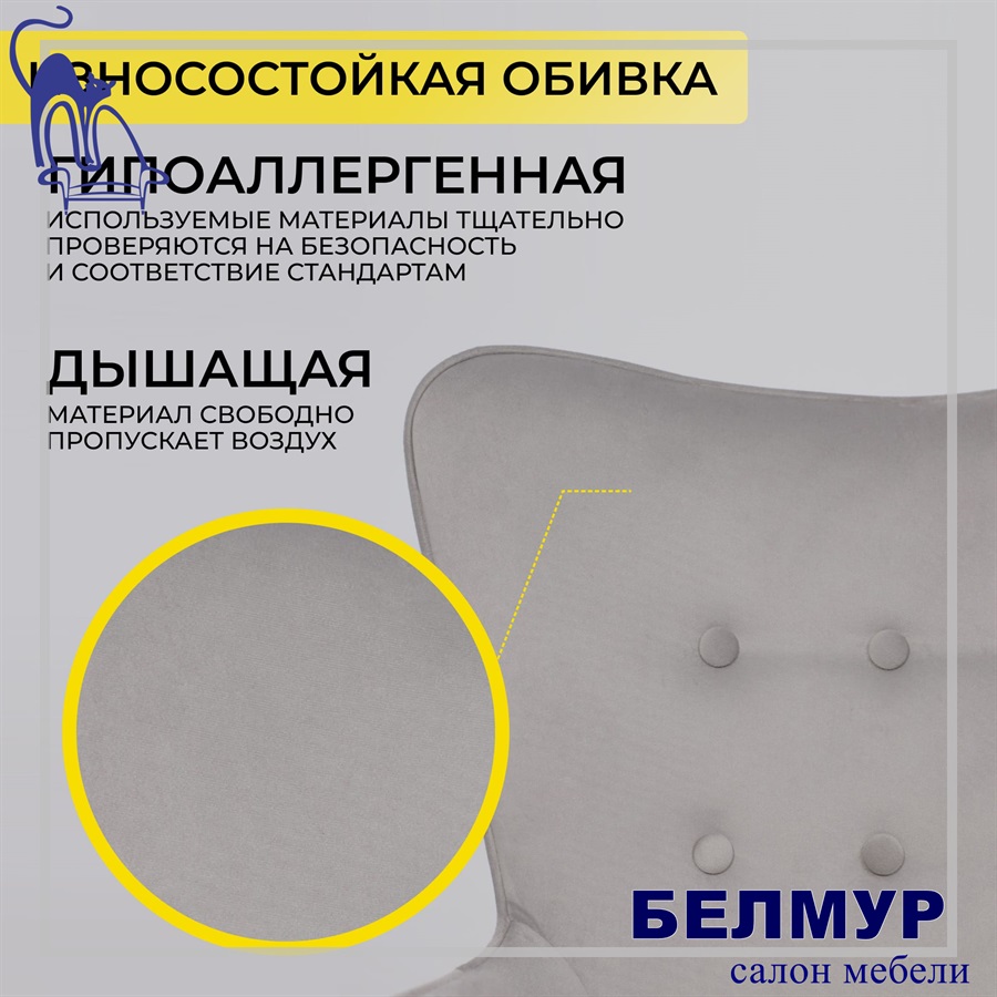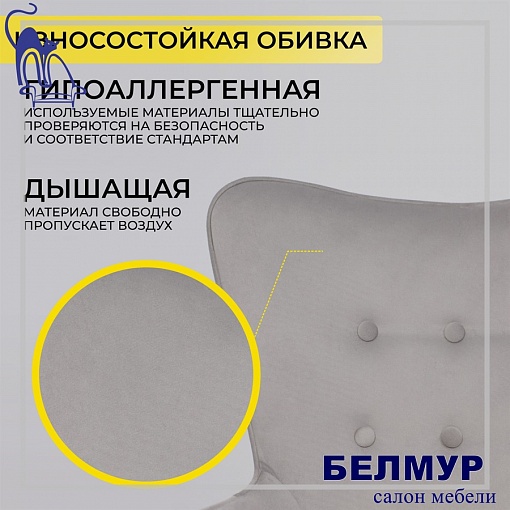 Артикул: _24.119921.Описание | Изготовлено из износостойкого велюра и прочного металлического основания.Внутрення сторона спинки декорированна пуговицами. Комфортная посадка и наличие подлокотников обеспечивают максимальный комфорт |