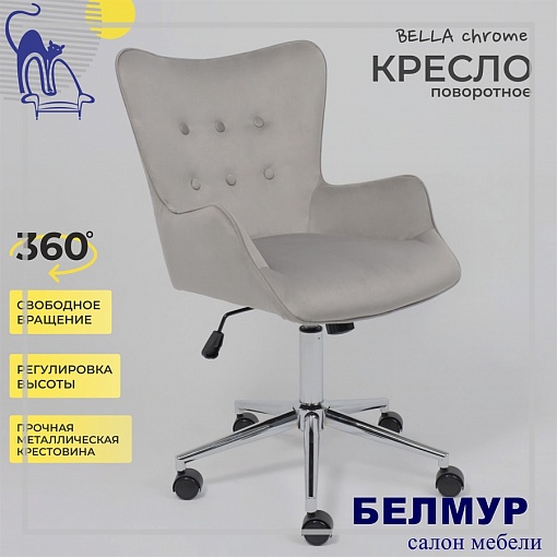 Кресло поворотное BELLA chrome, Seven 324, велюр/серый