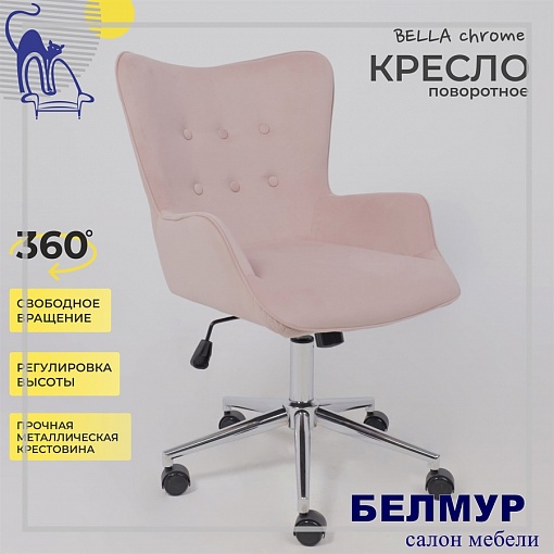 Кресло поворотное BELLA chrome, Velluto 37, велюр/пыльная роза