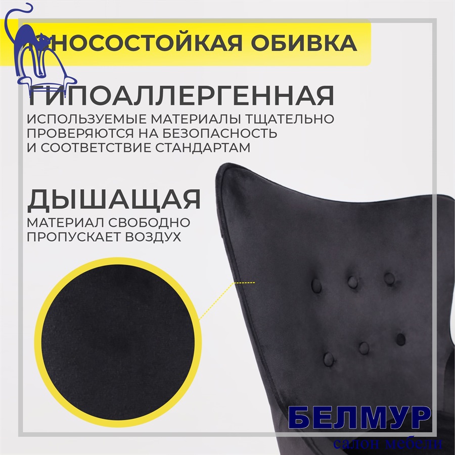 Артикул: _24.111962.Описание | Изготовлено из износостойкого велюра и прочного металлического основания.Внутрення сторона спинки декорированна пуговицами. Комфортная посадка и наличие подлокотников обеспечивают максимальный комфорт |