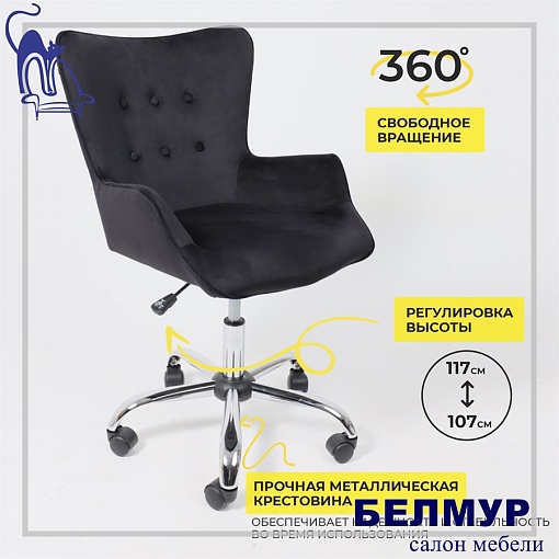 Кресло поворотное BELLA Seven 035, велюр/черный
