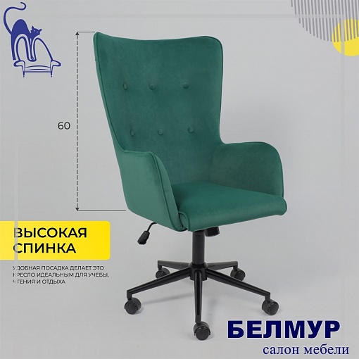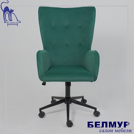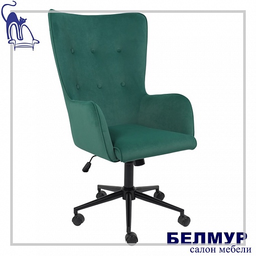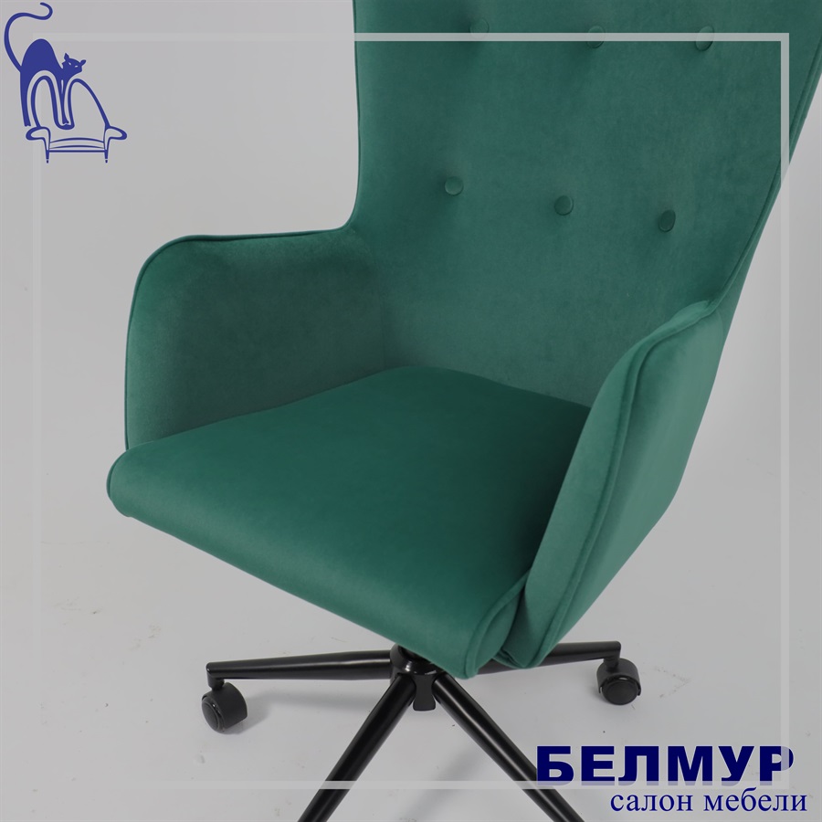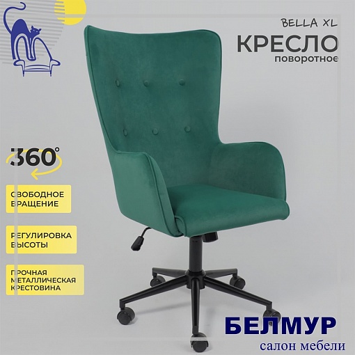 Кресло поворотное BELLA XL black, Kiton 709 Jungle, велюр/зеленый