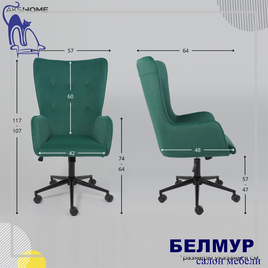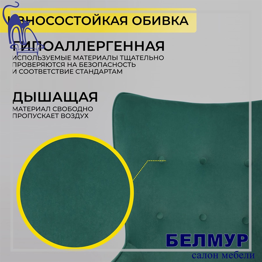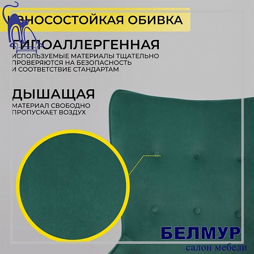 Артикул: _24.116159.Описание | Изготовлено из износостойкого велюра и прочного металлического основания.Внутрення сторона спинки декорированна пуговицами. Комфортная посадка и наличие подлокотников обеспечивают максимальный комфорт |