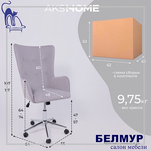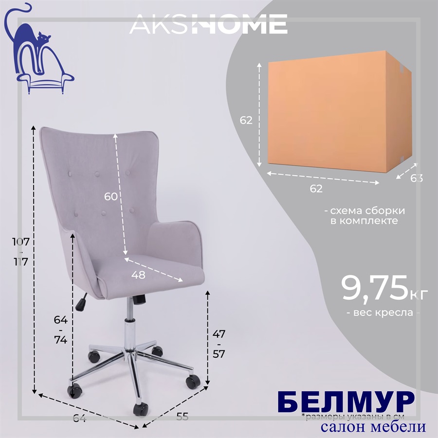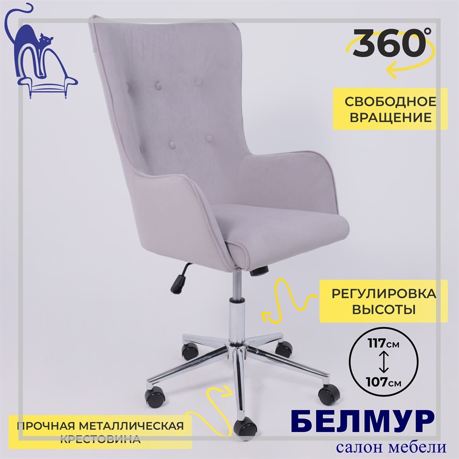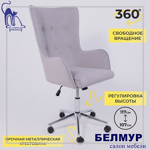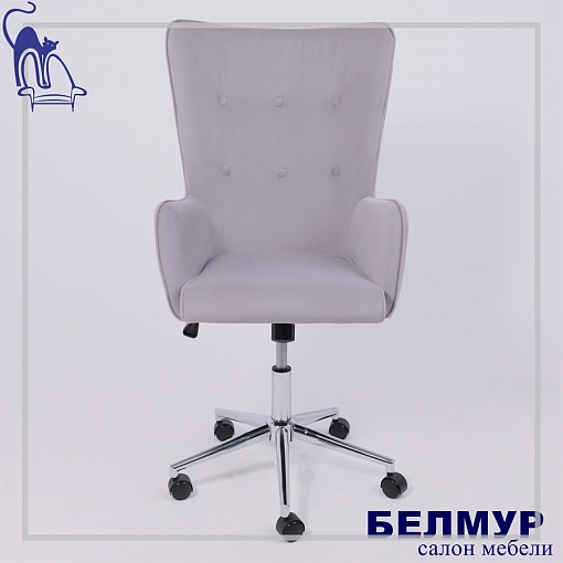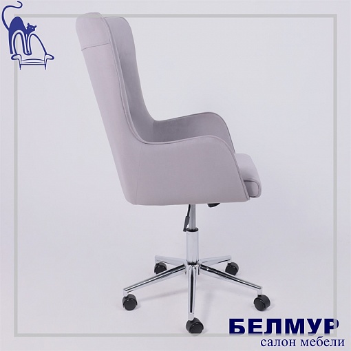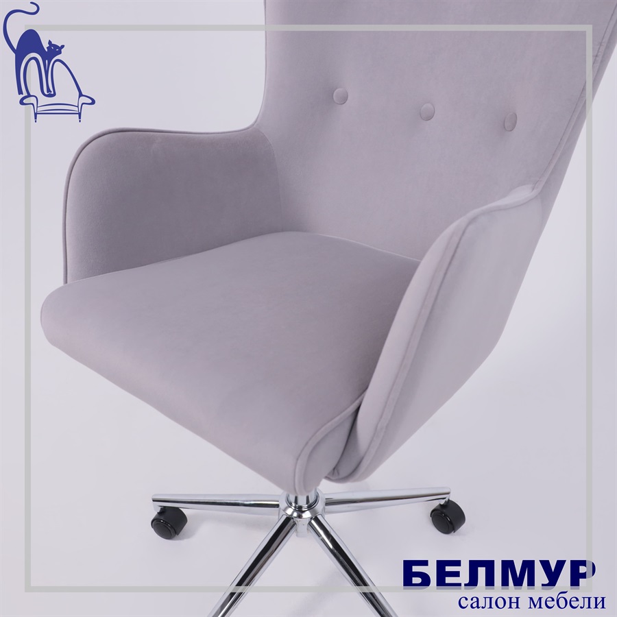 Кресло поворотное BELLA XL chrome, Kiton 722 Smoke, велюр/светло-серый