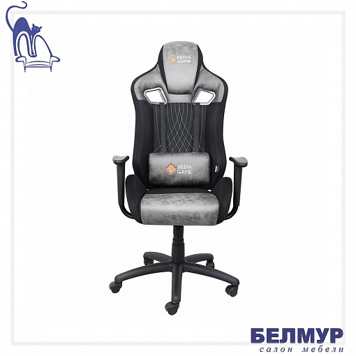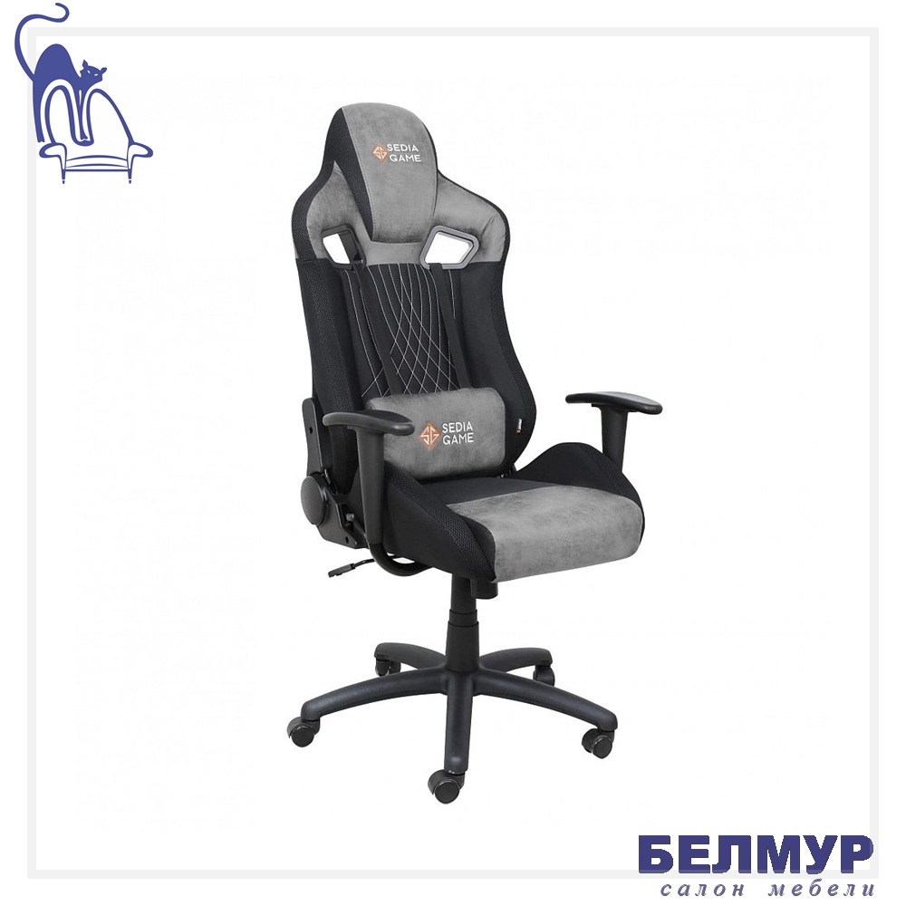 Кресло поворотное ROYAL, велюр/замша, светло-серый+черный