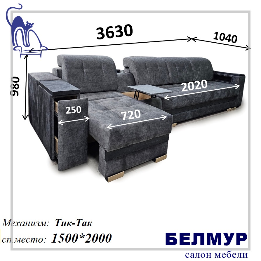 | Ящик для белья | В указанной комплектации предусмотрен ящик в соединительном сегменте, в диване и в кресле |
