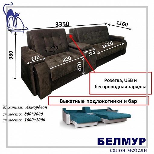 | Дополнительные опции | В соединительном сегменте выкатной бар, USB с розеткой ибеспроводной зарядкой |