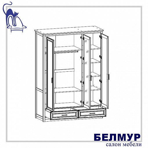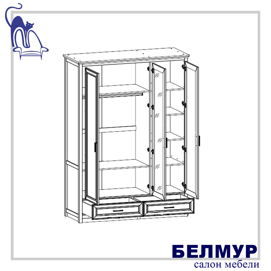 - слева и справа расположены глухие распашные двери; в центральной части — дверь с зеркалом