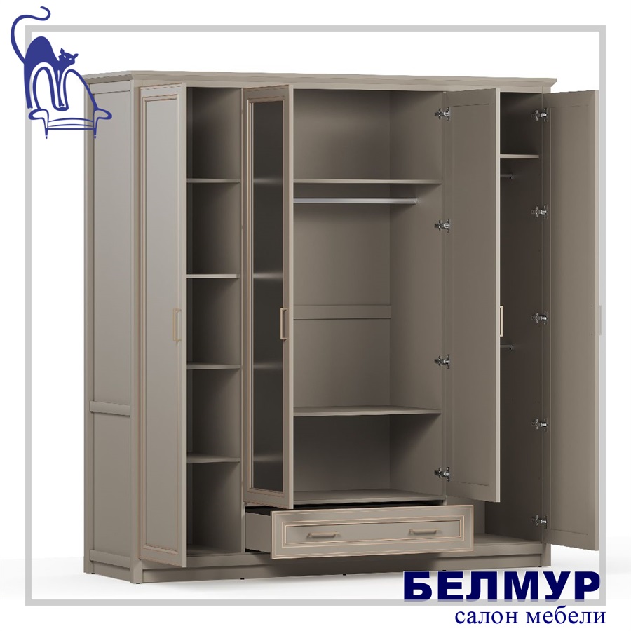- слева и справа расположены глухие распашные двери; в центральной части — 2 двери с зеркалом