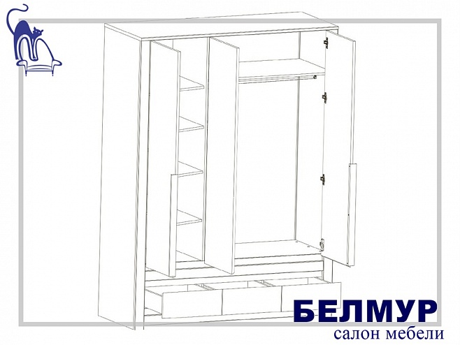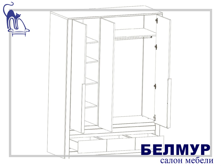 | Механизм открывания | Петли: шарнирные полунакладные плавного закрывания; Направляющие: шариковые с частичным выдвижением с плавным закрыванием |