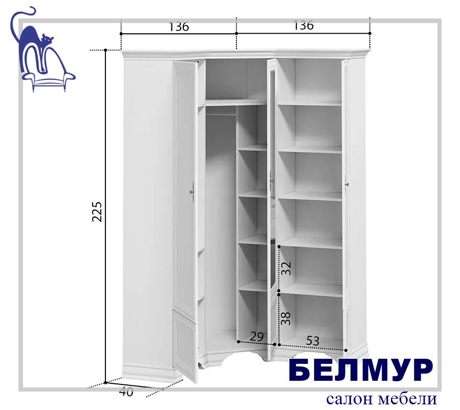KENTAKI белый шкаф угловой S320-SZFN5D