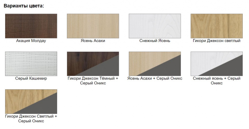 | Цвет | по выбору (белый/крем/дуб/венге) |