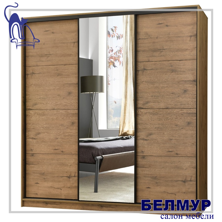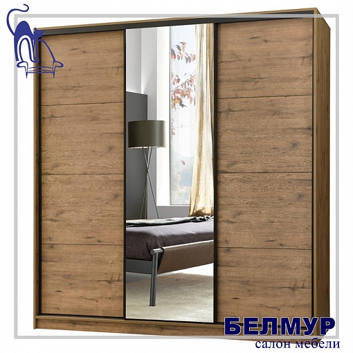 BREMO Шкаф-купе (3-дверный, ДЗД, Дуб велингтон, 207.5х220х60 см