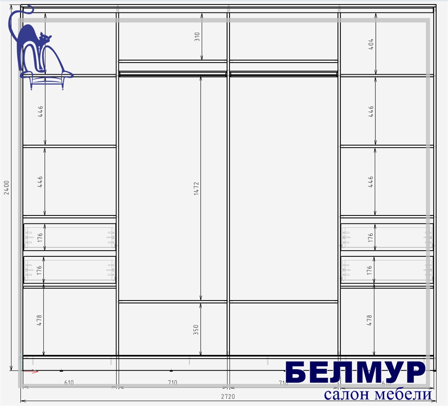 Elgona Шкаф-купе (4-дверный, ЗЗЗЗ, Ясень снежный, 272х240х60 см