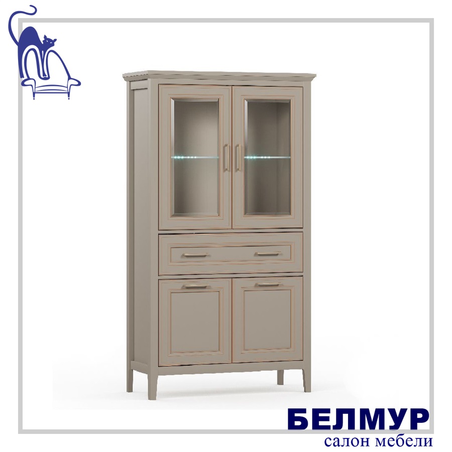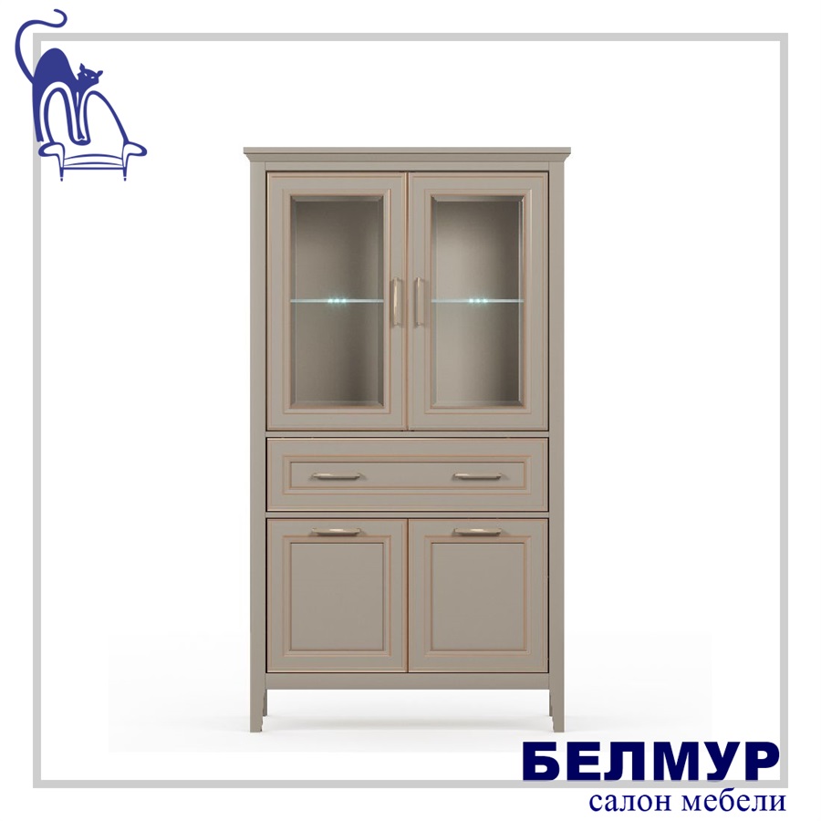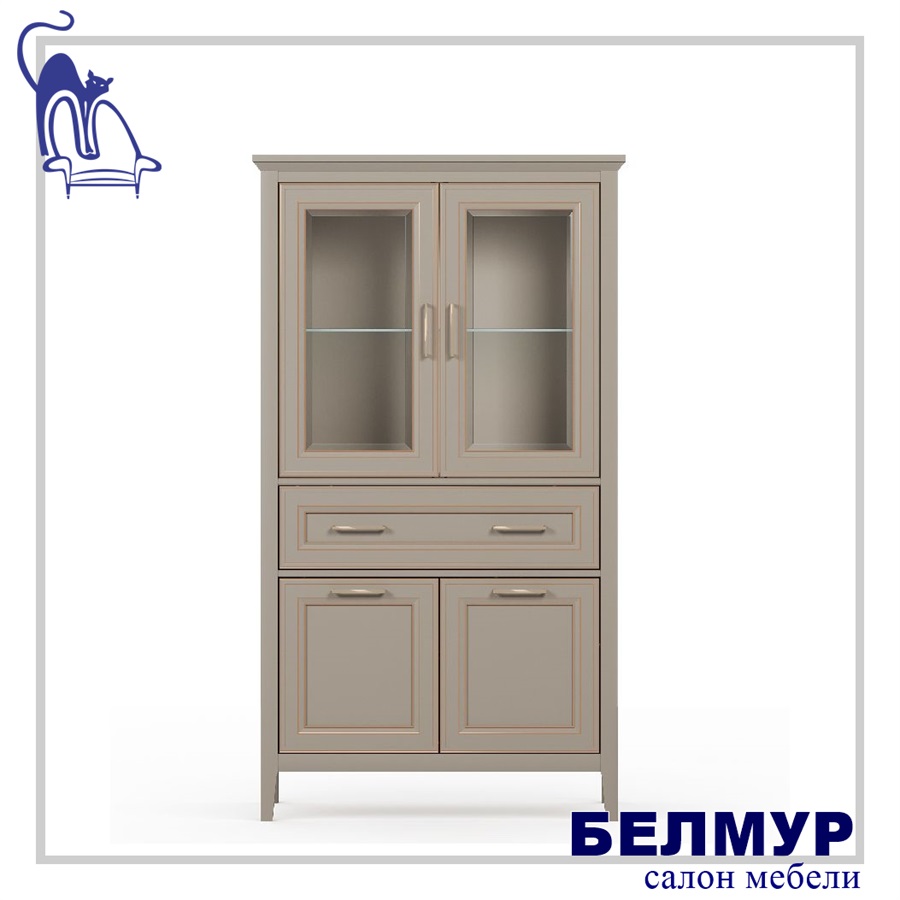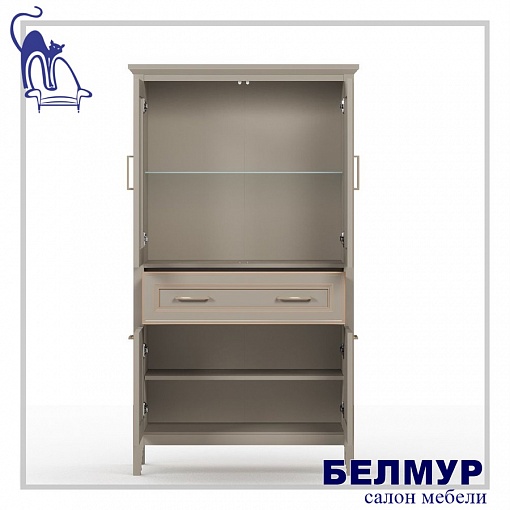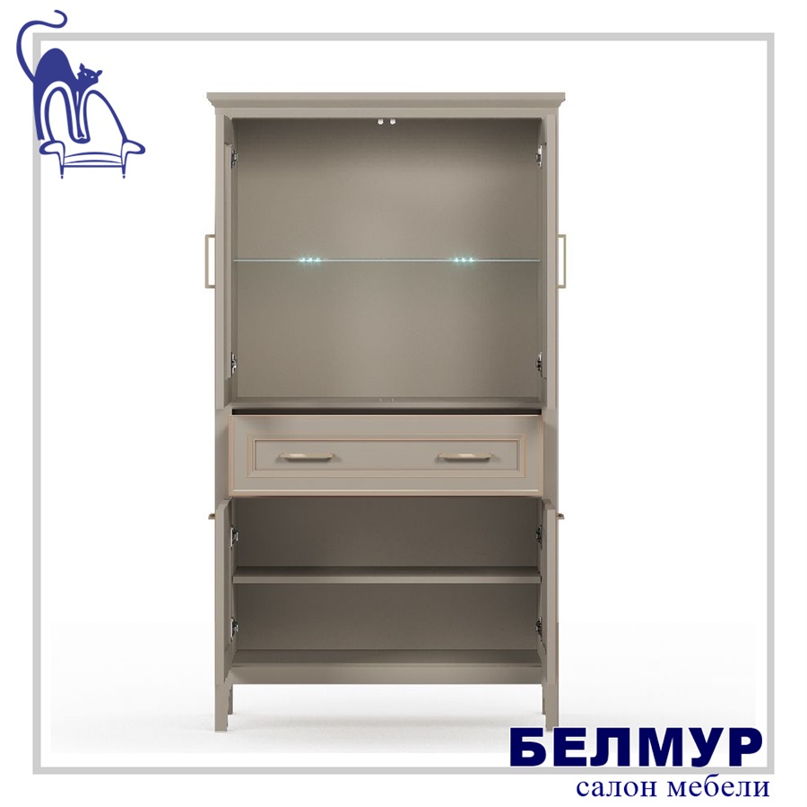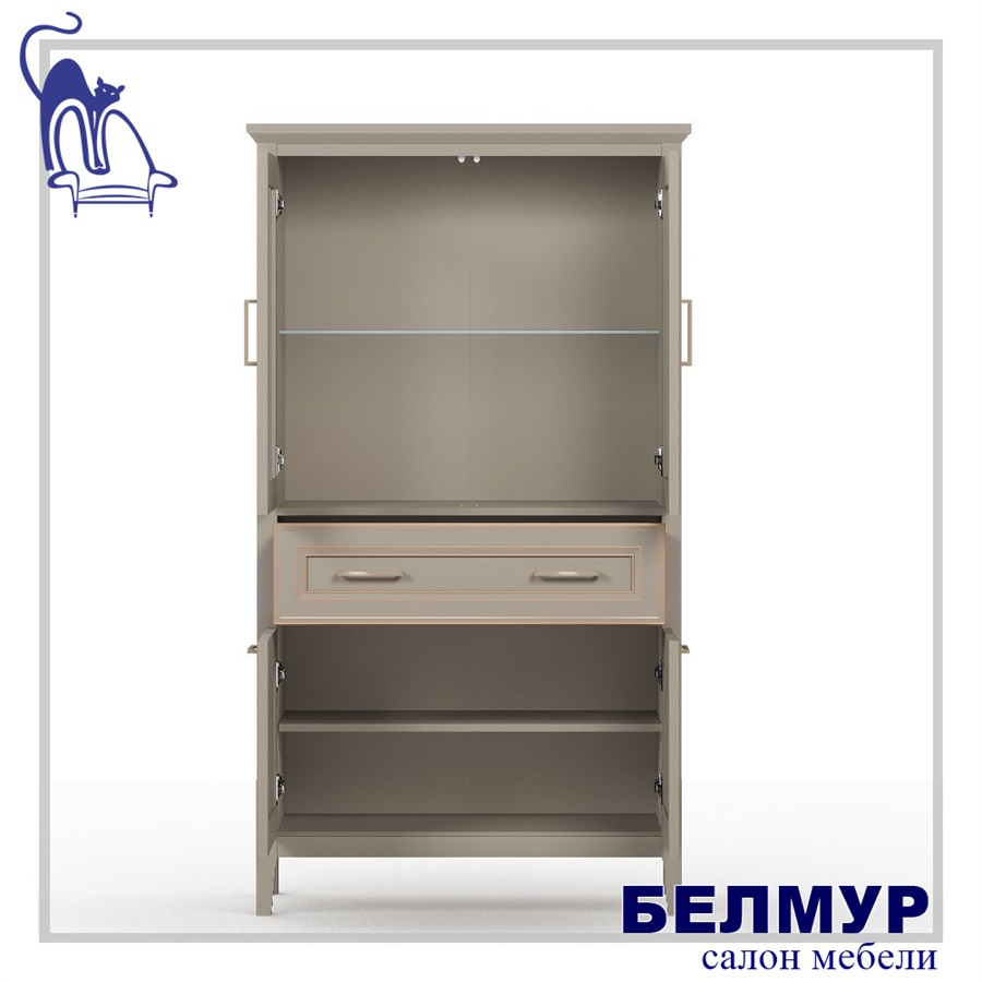 - в верхней части шкафа расположены две двери со стеклянными вставками (стекло с фацетом)